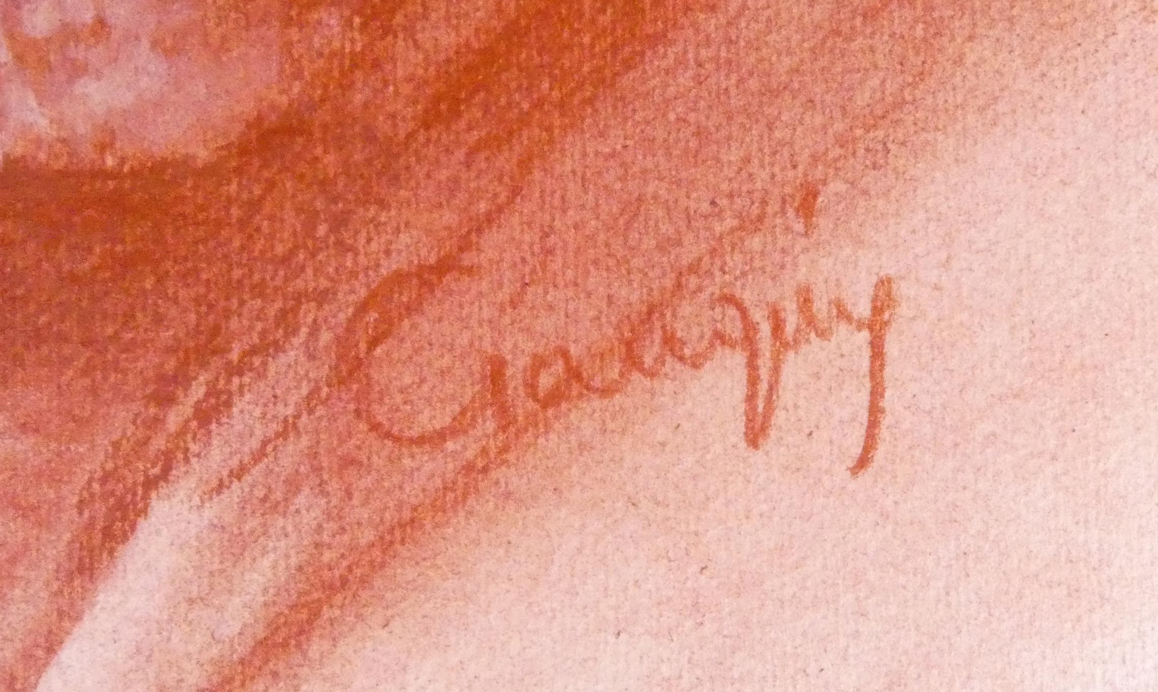 Tableau dessins sanguine/pastel (4pcs) -Portrait d'homme- signé *GAUQUIE C.* (Charles) (20eS) dont 1 daté 83 35x27cm sans cadre