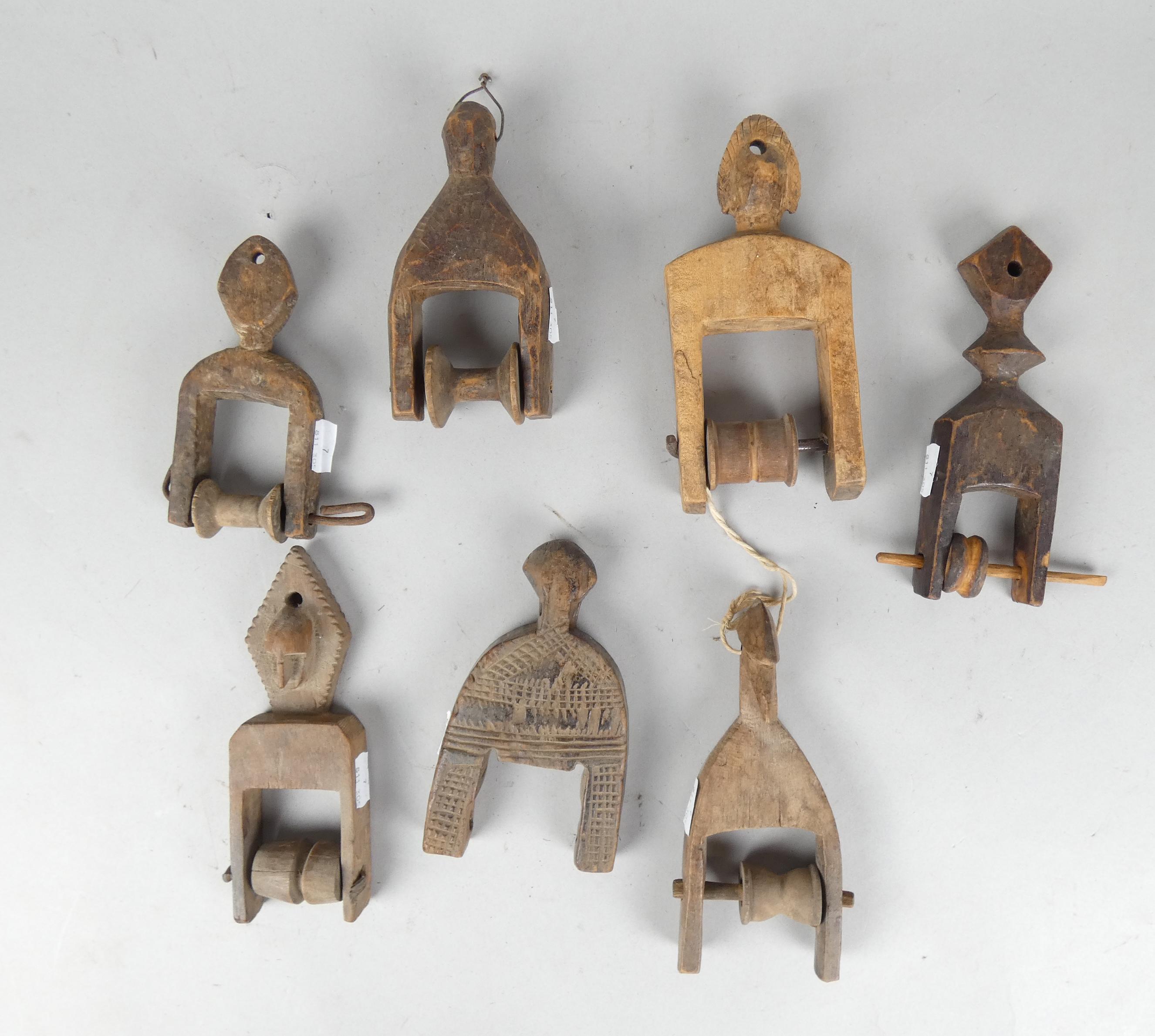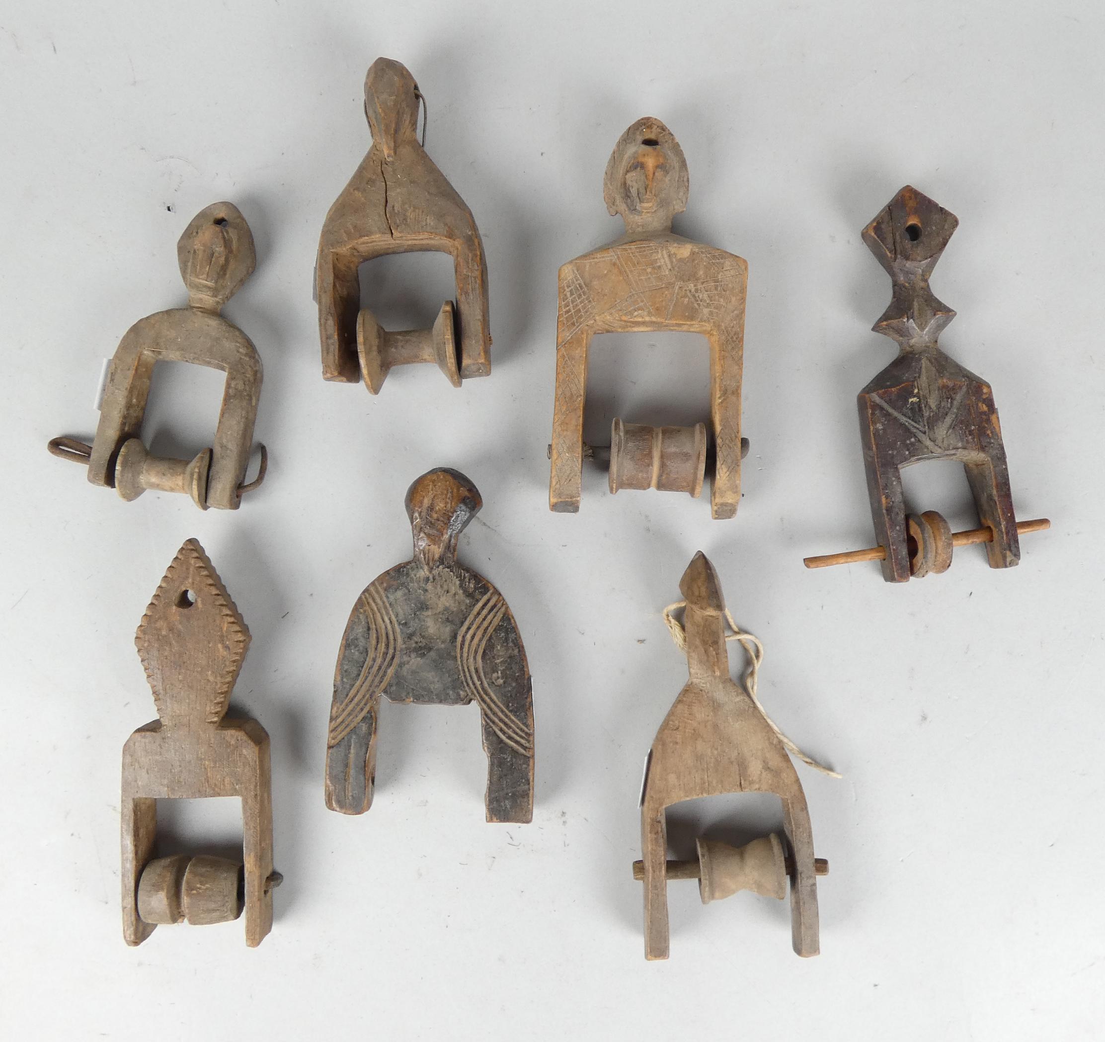 Africain: Lot de poulies Senoufo et Bambara MALI (7pcs) L+/-:18cm