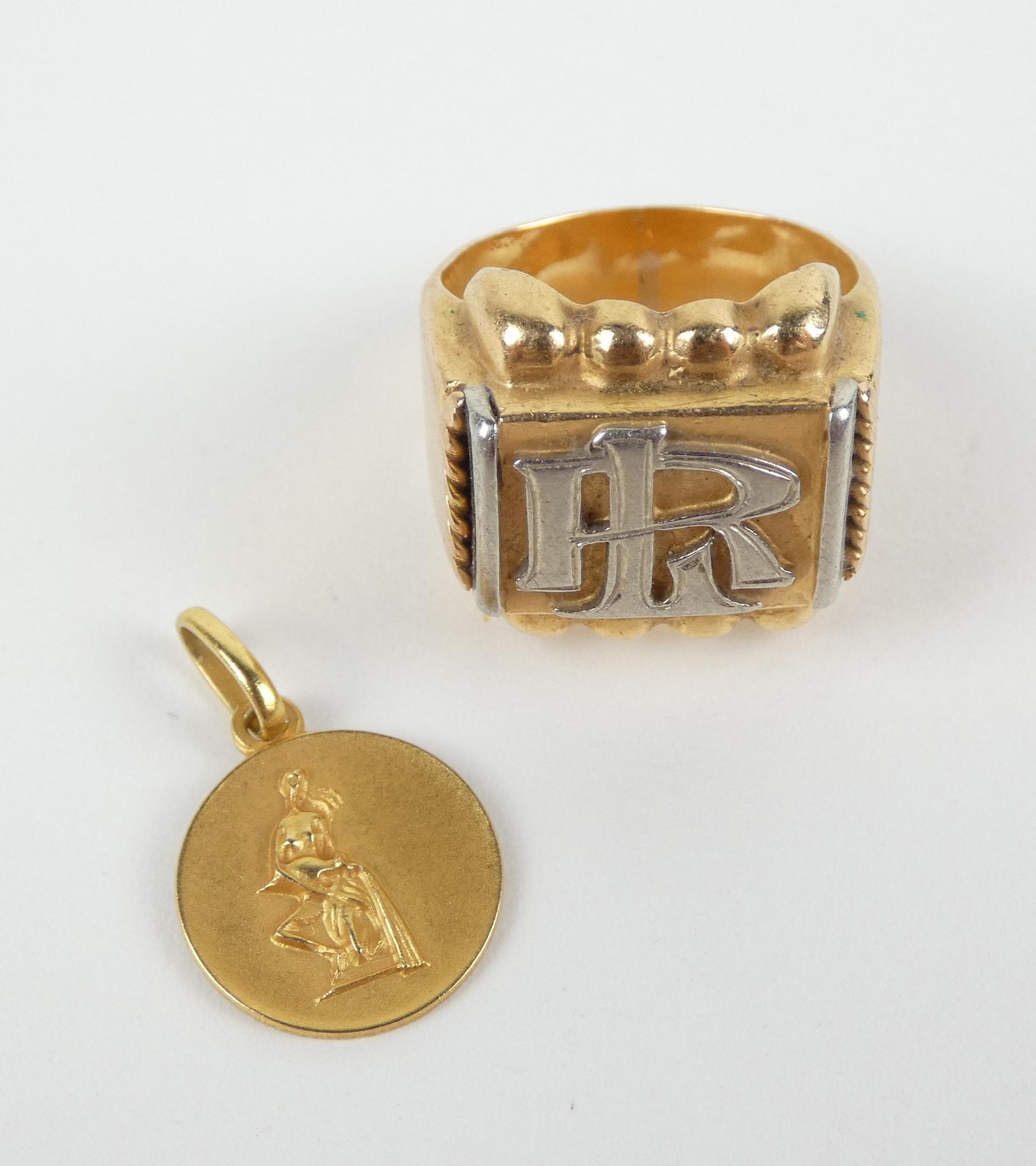 Bijou: Bague/chevalière -RL- et pendentif en or jaune 18K P: 9,8g (2pcs)