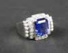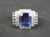 Bijou : Bague ART DECO en platine sertie en son centre d'un saphir probablement synthétique entouré de diamants