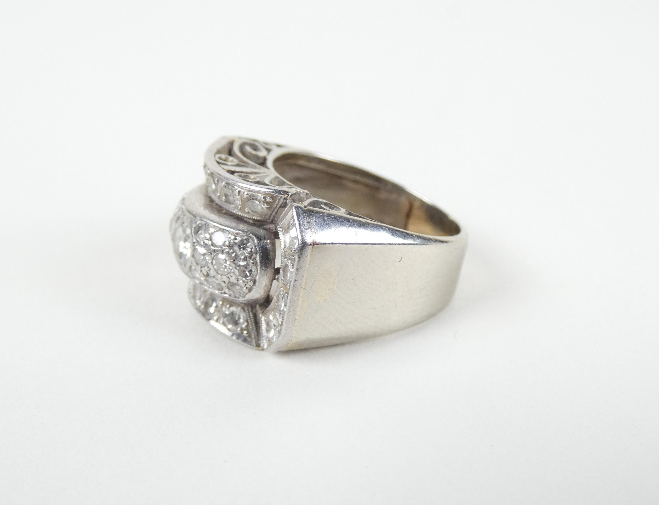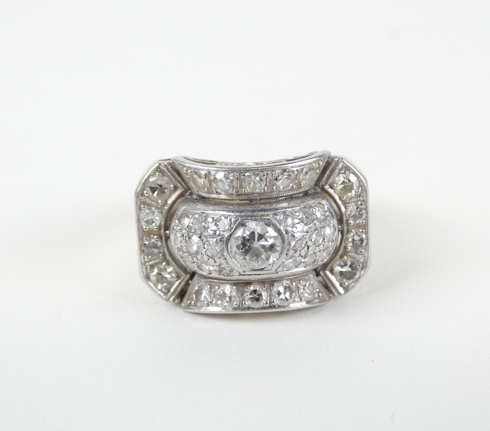 Bijou: Bague ART DECO en or blanc 18K sertie de diamants dont 1 central (acc) d'env. 0,25ct P: 7,5g TDD: 51