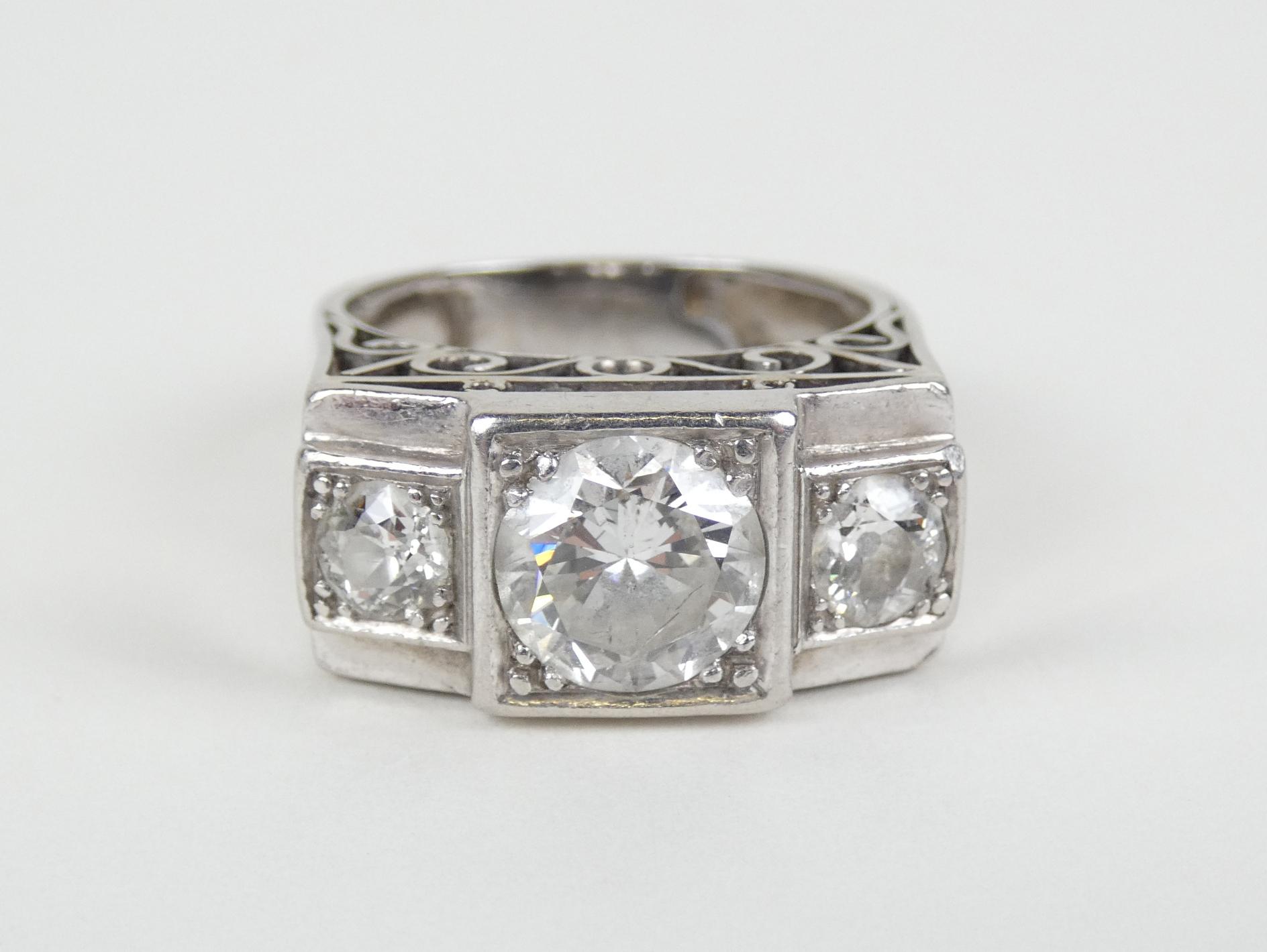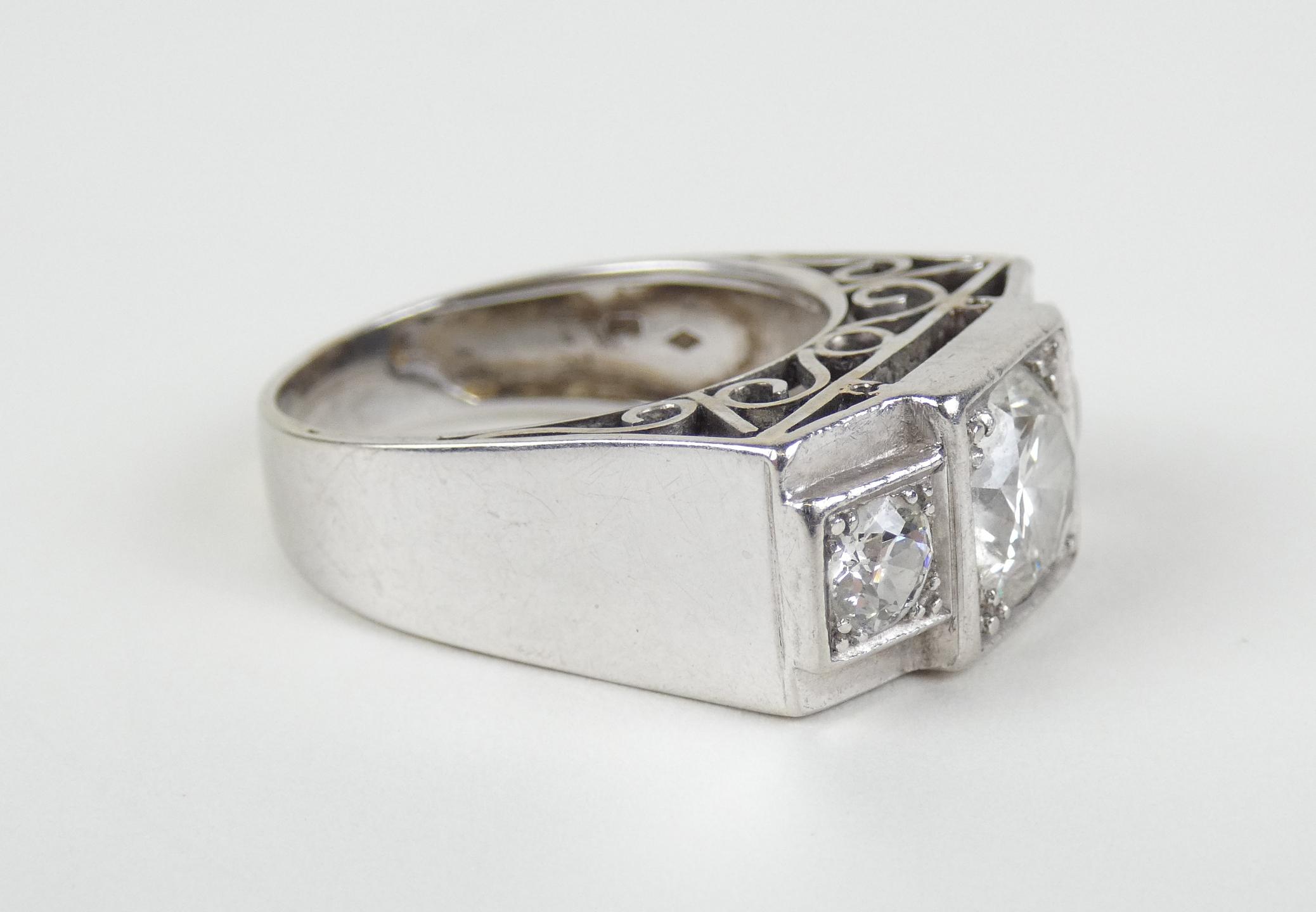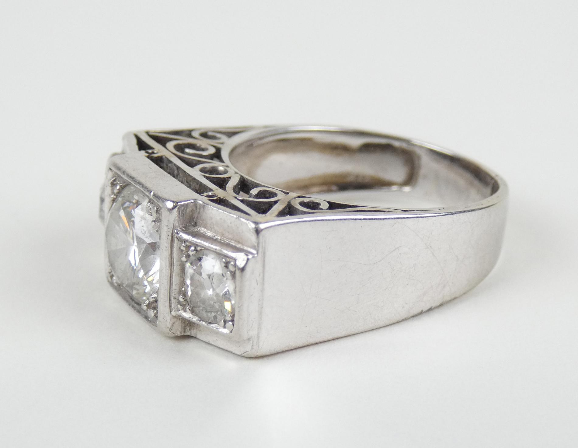 Bijou: Bague ART DECO en or blanc 18K et platine sertie d'un diamant central d'env. 1,50cts épaulé de 2diamants d'env. 0,25cts P: 10,2g TDD: 54/55