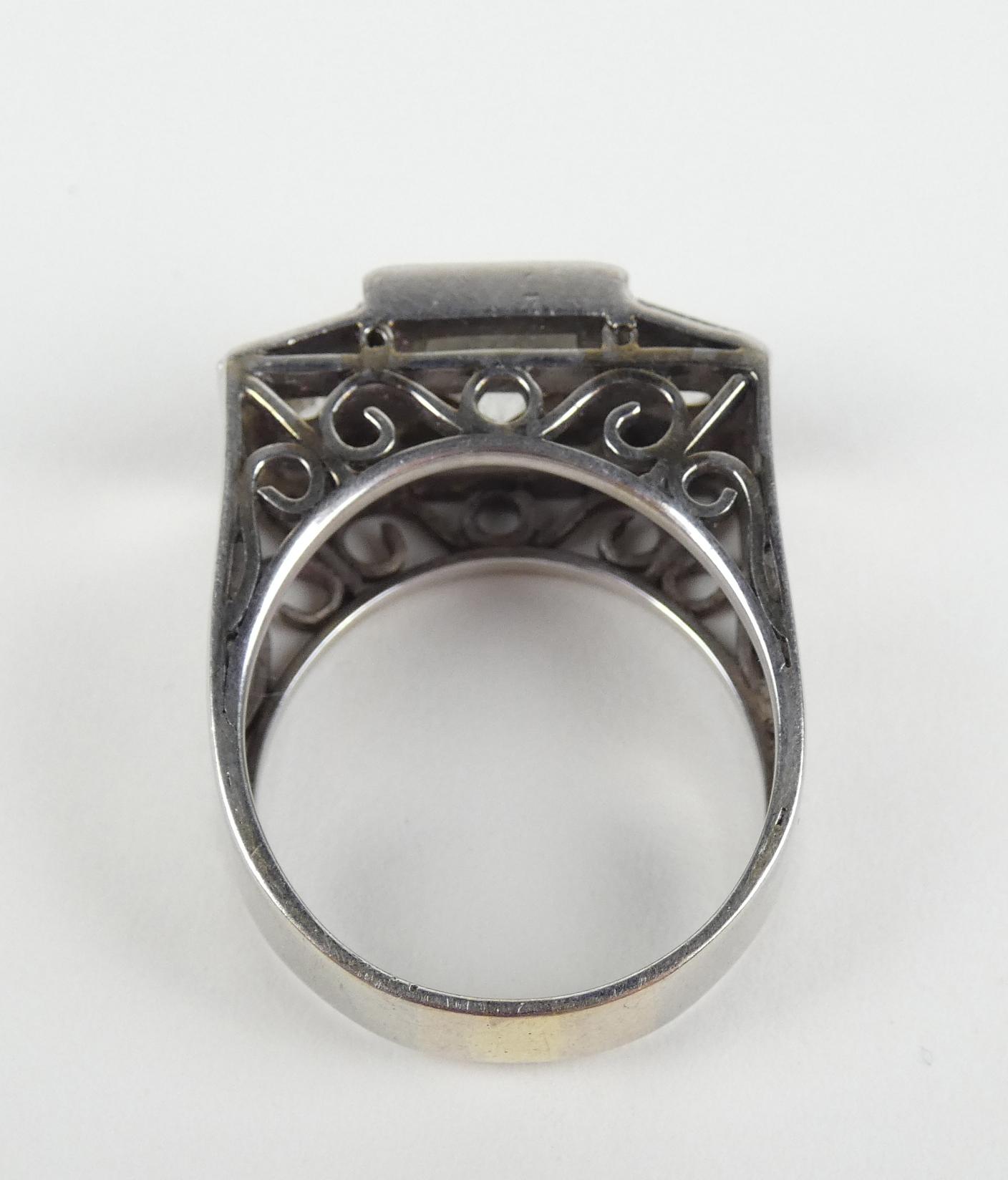 Bijou : Bague ART DECO en or blanc 18K et platine sertie d'un diamant central épaulé de diamants