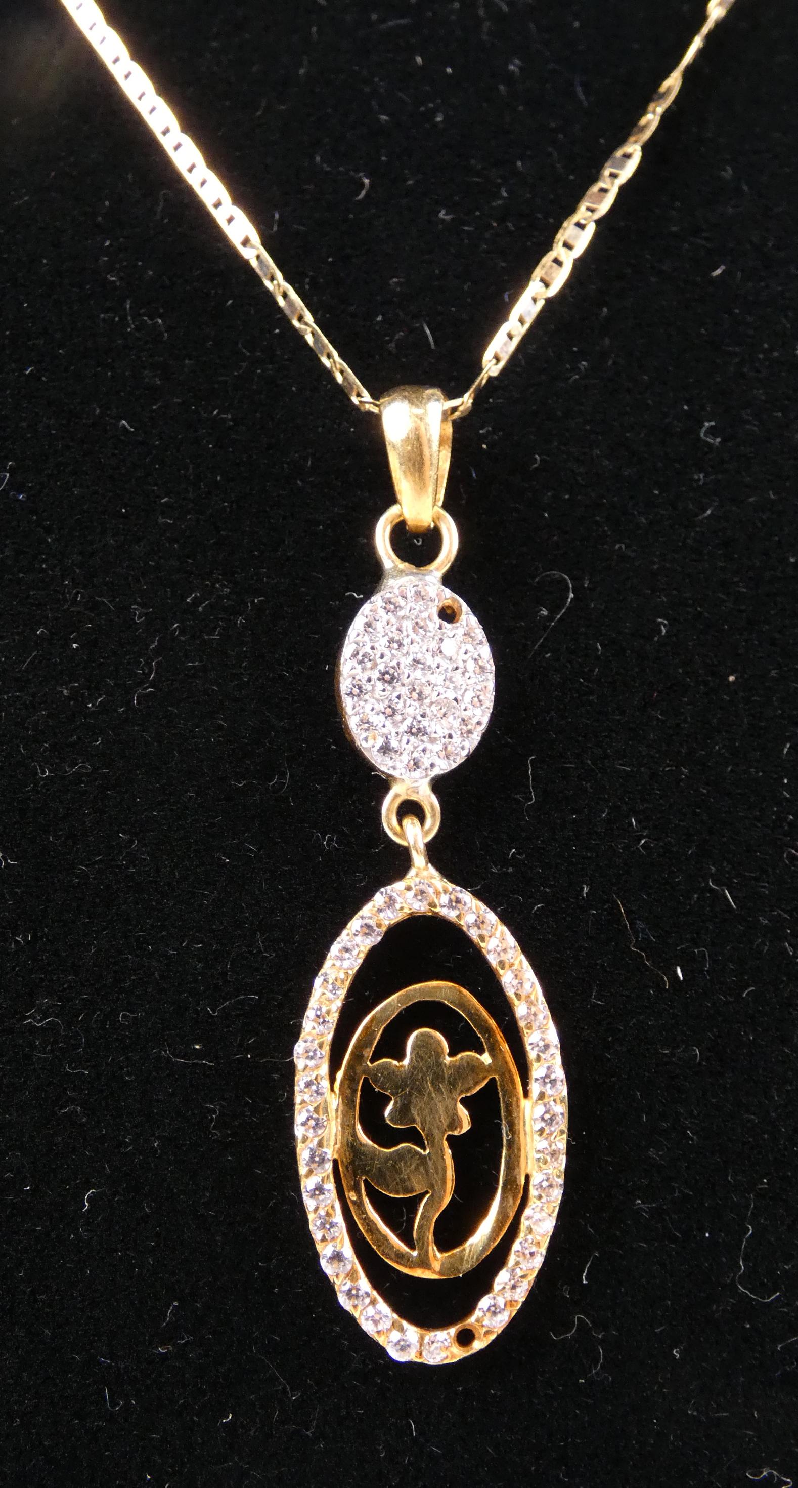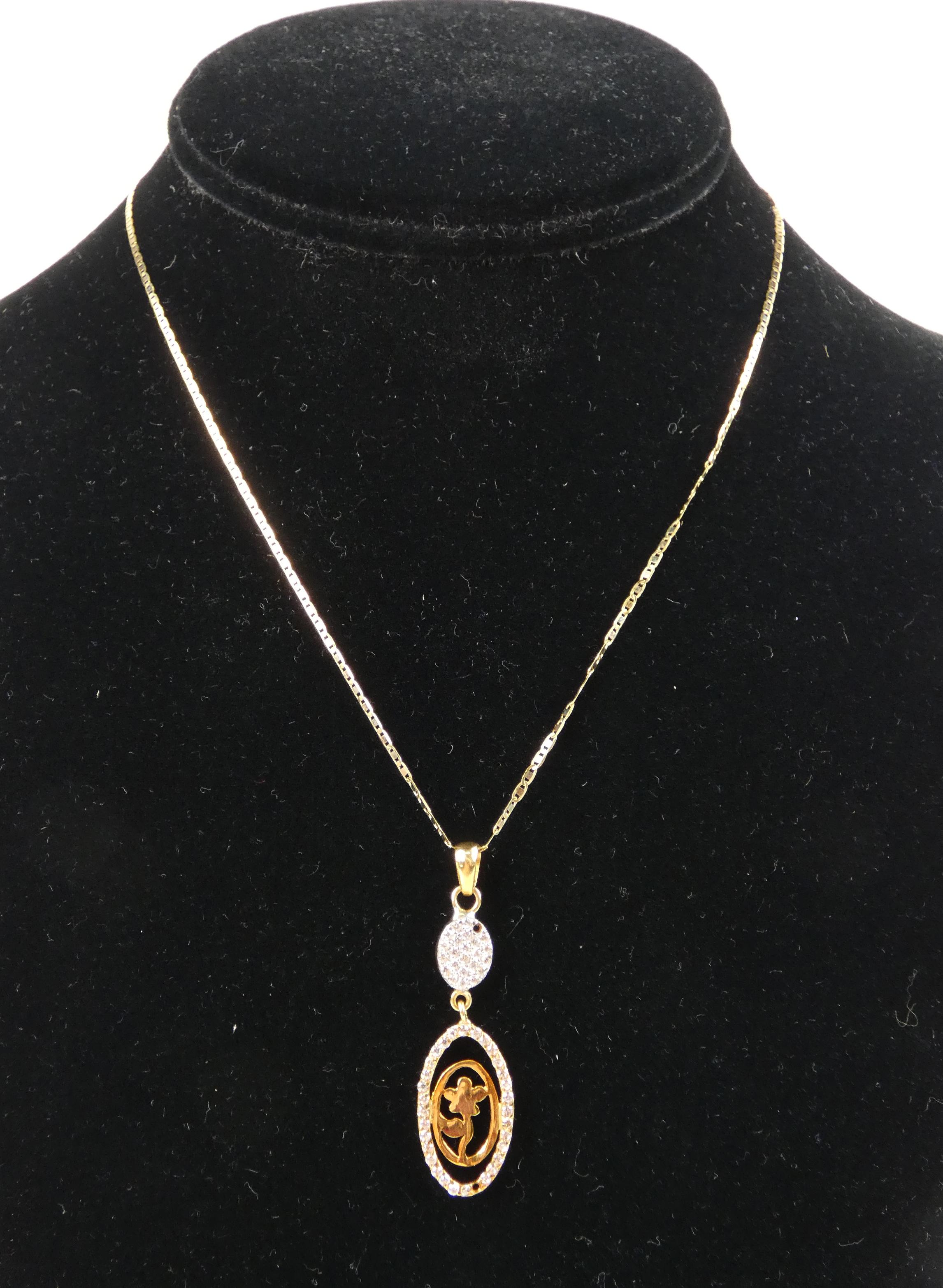 Bijou : Collier/chaine et pendentif en or jaune 18K serti de pierres incolores (2mq)