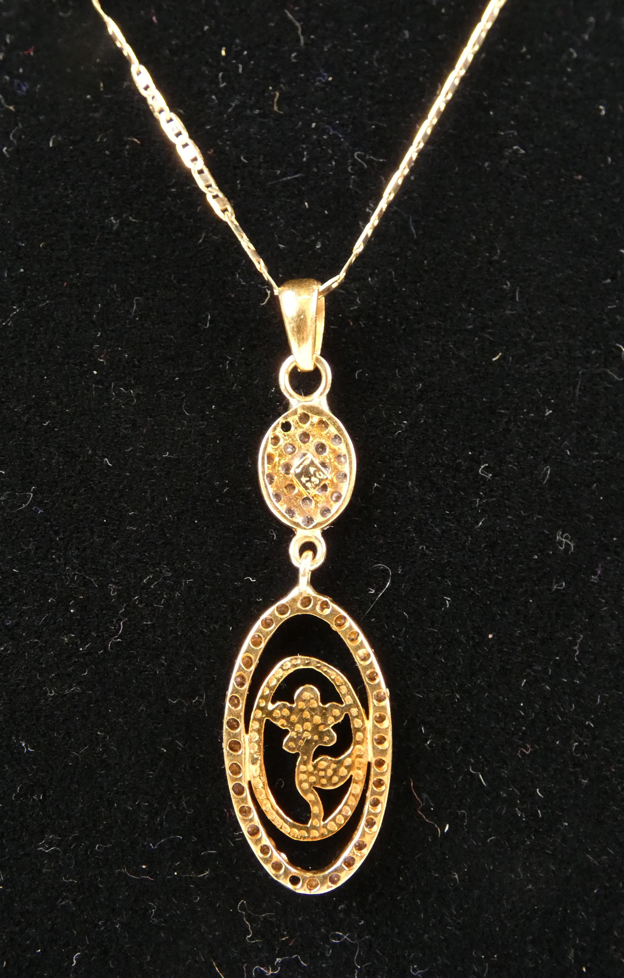Bijou: Collier/chaine et pendentif en or jaune 18K serti de pierres incolores (2mq) P: 4,1g L:40cm