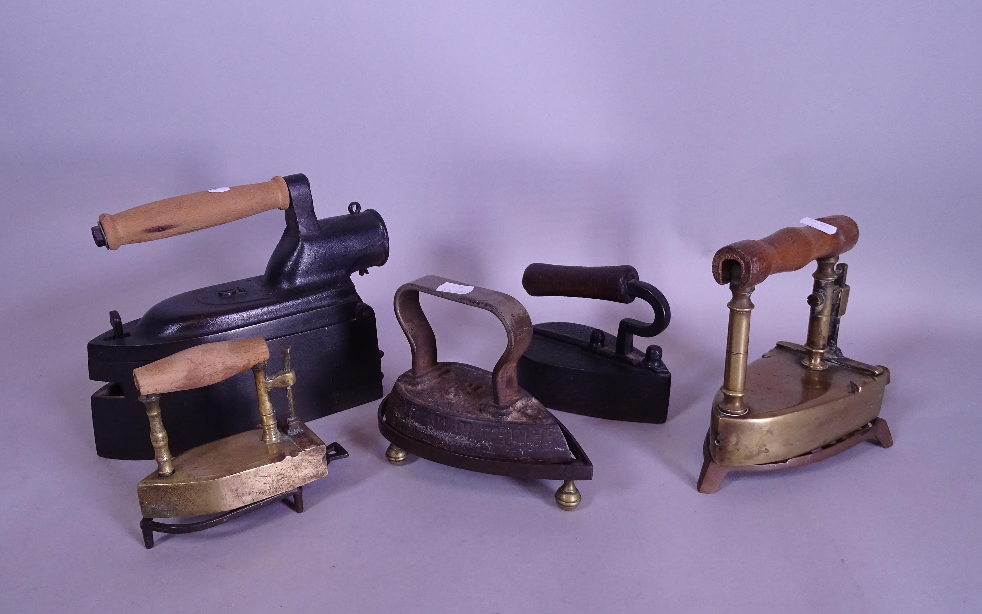 Collection:(8) 5 fers à repasser et 3 supports : 2 en bronze 19eS 3 en fonte 19eS