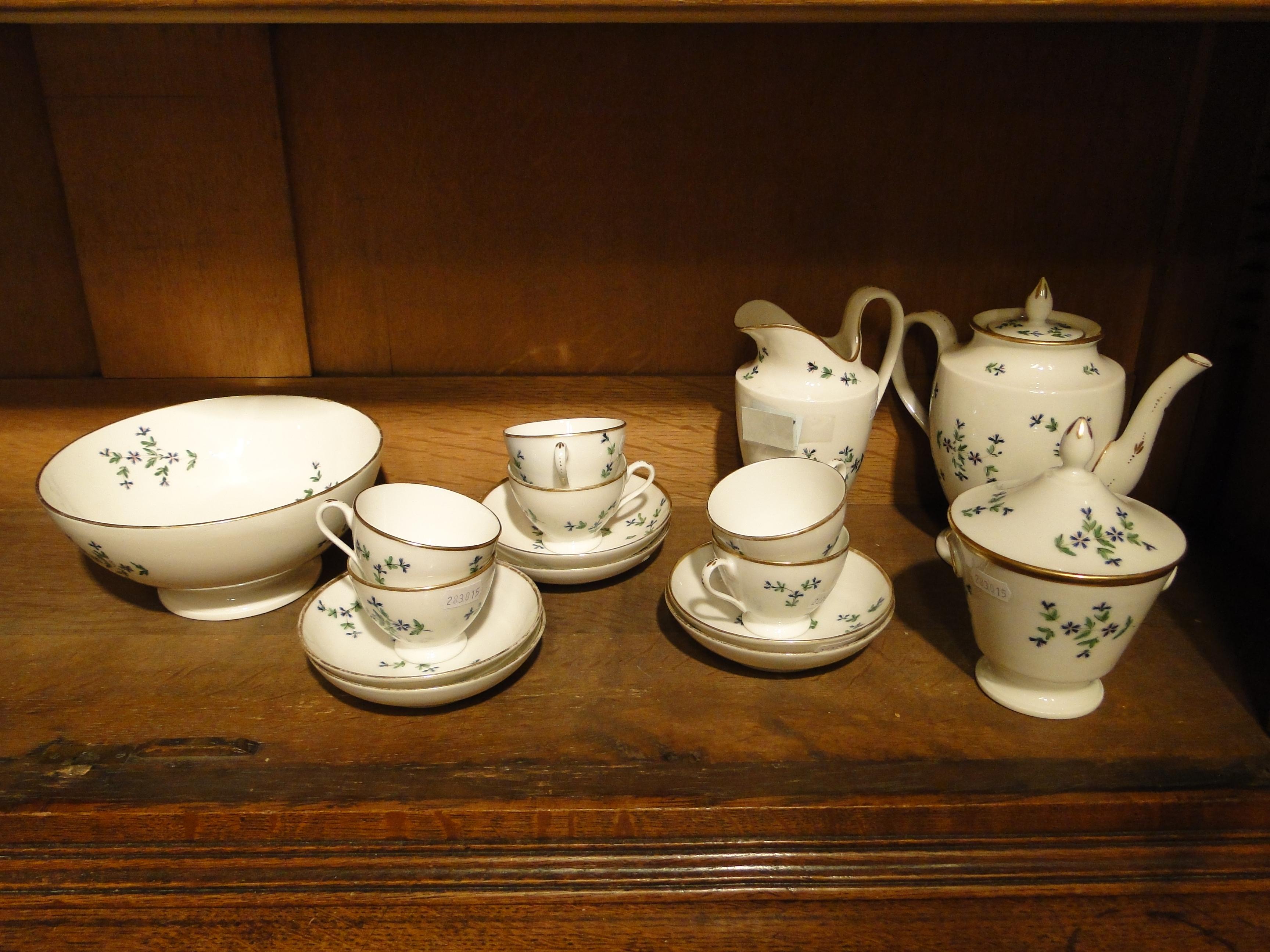 Service à café en porcelaine Nast décor aux barbeaux rehautsd'or: théière, sucri