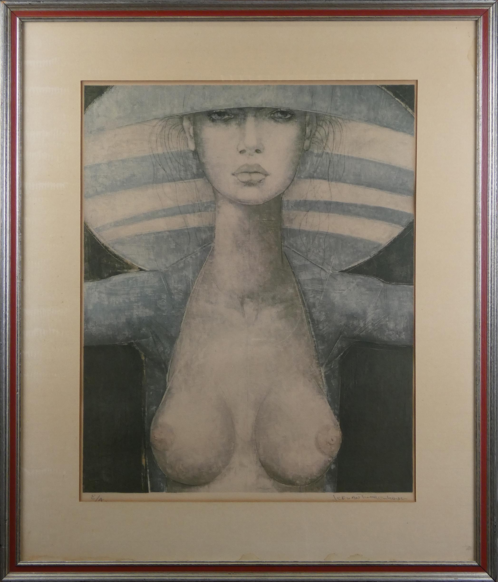Estampe: Lithographie couleur -l'Ange bleu- Epreuve d'artiste signé *VAN TUERENHOUT J.* (Jef) (1926, 2006) 60x48cm cadre sous verre
