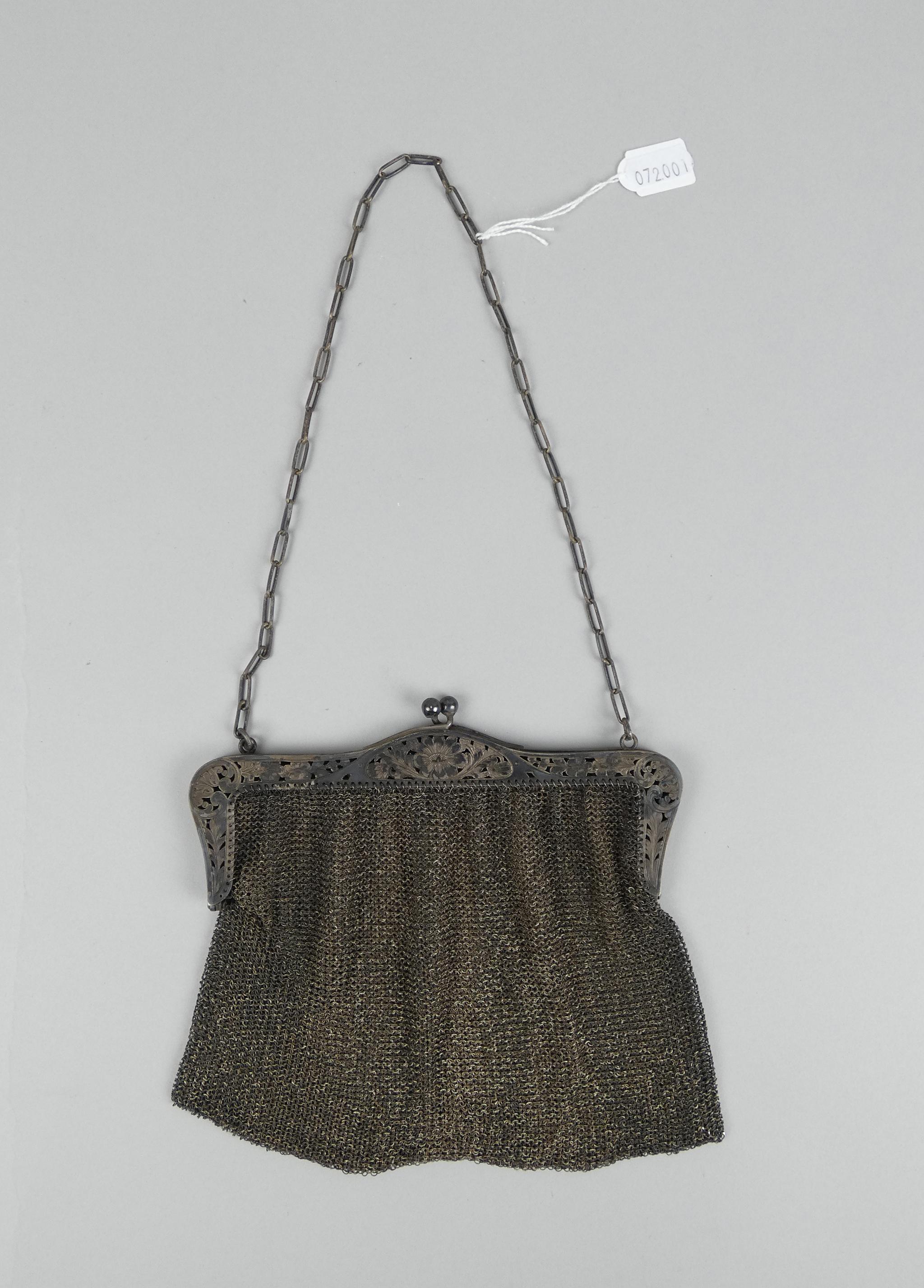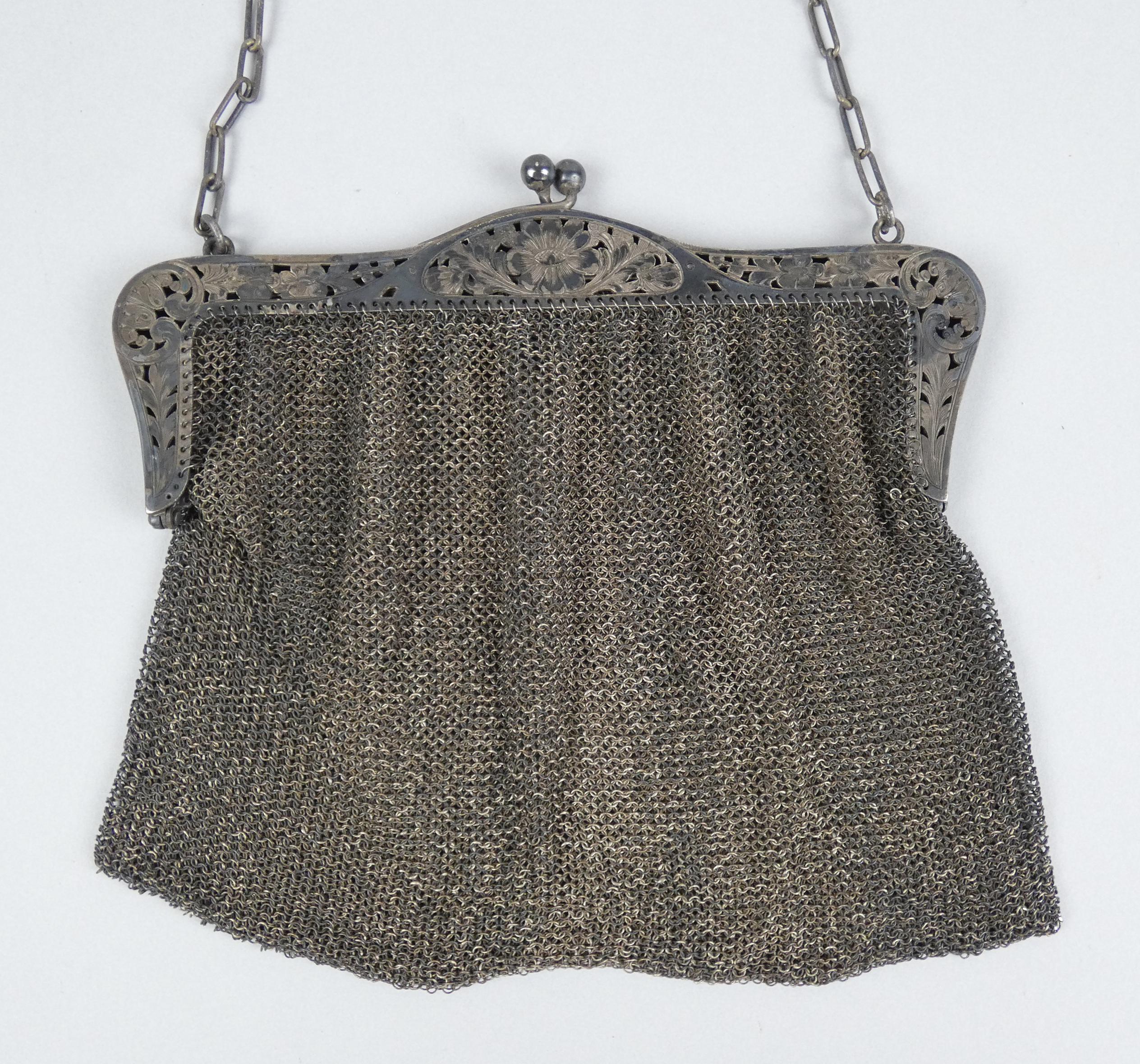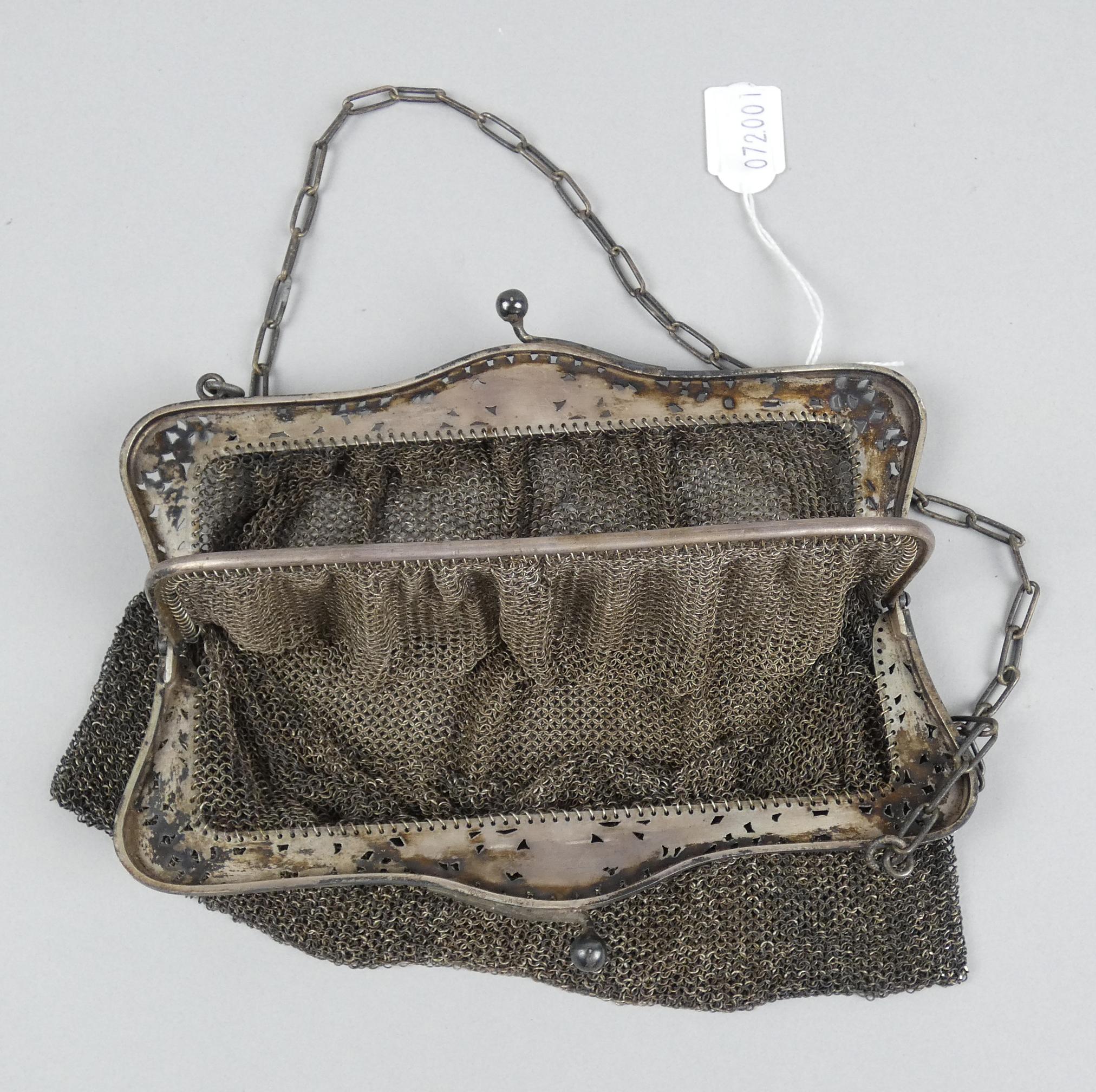 Argenterie: Sac de bal double avec mailles et monture en argent 800 P: 317g