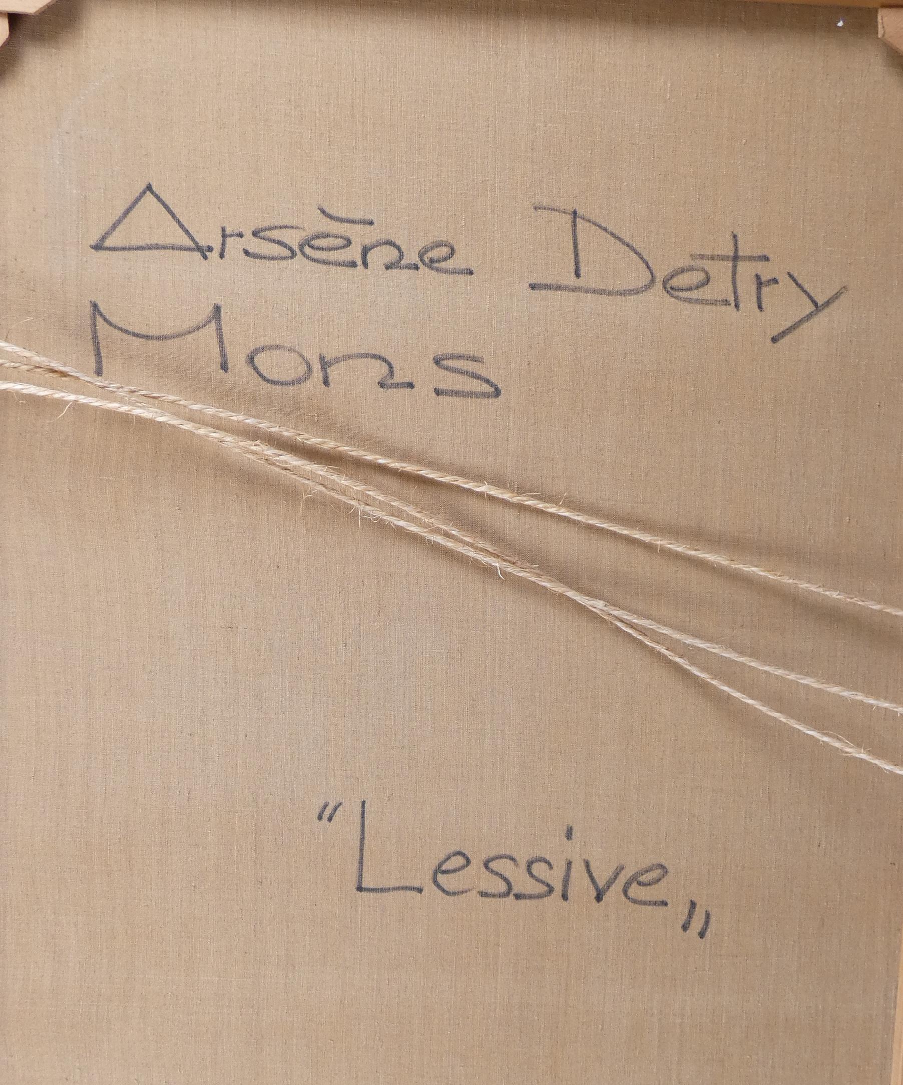 Tableau HST (pt enfoncement) -Lessive- signé *DETRY A.* (Arsène) (1897, 1981) 73x100cm cadre moderne