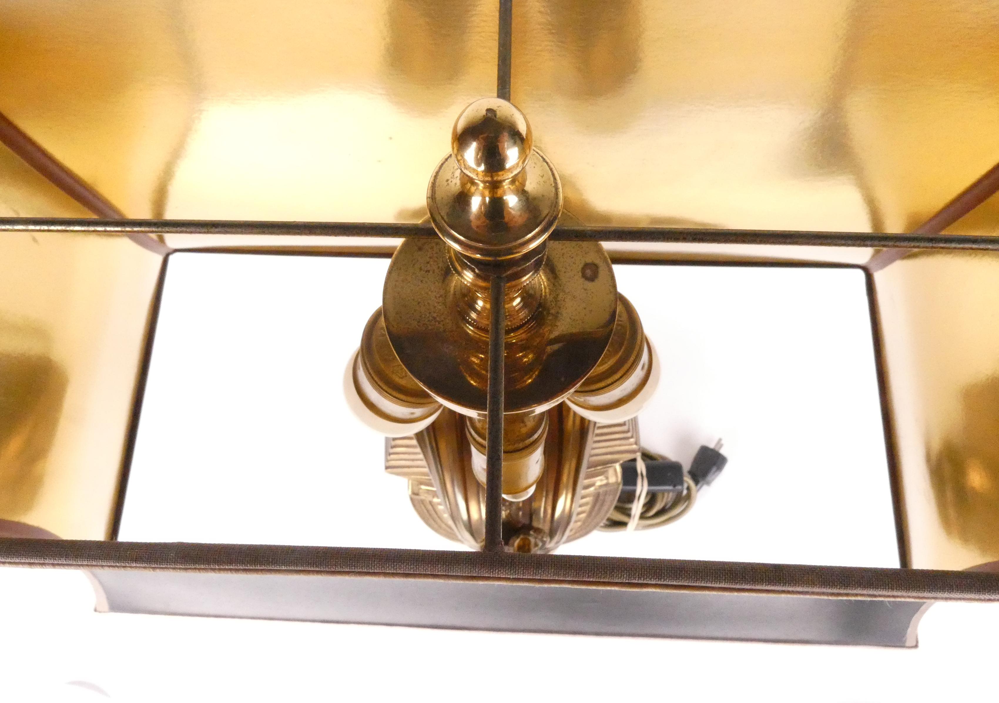 Luminaire: Lampe vintage attribué à la Maison CHARLES -Pharaon- en laiton doré 3 lumières avec abat-jour noir H:70cm