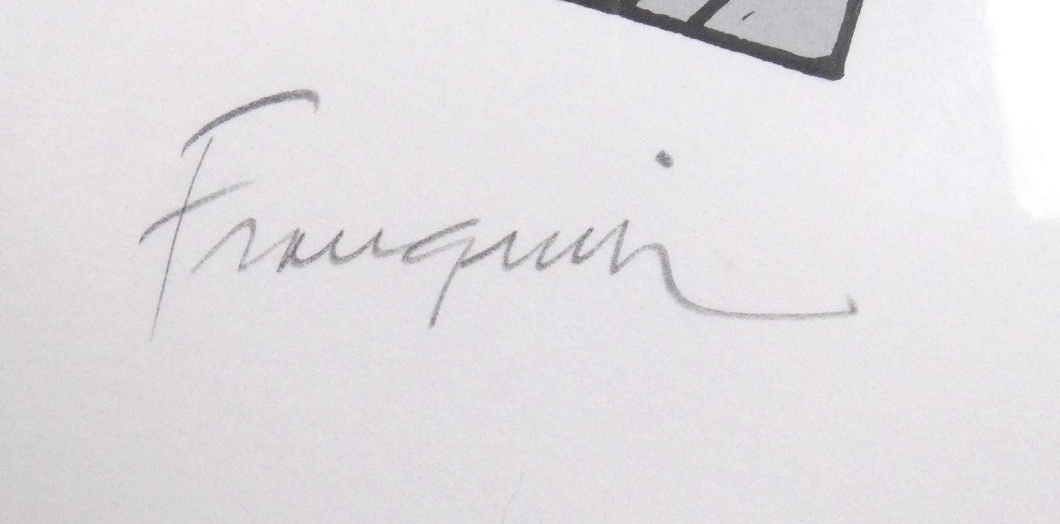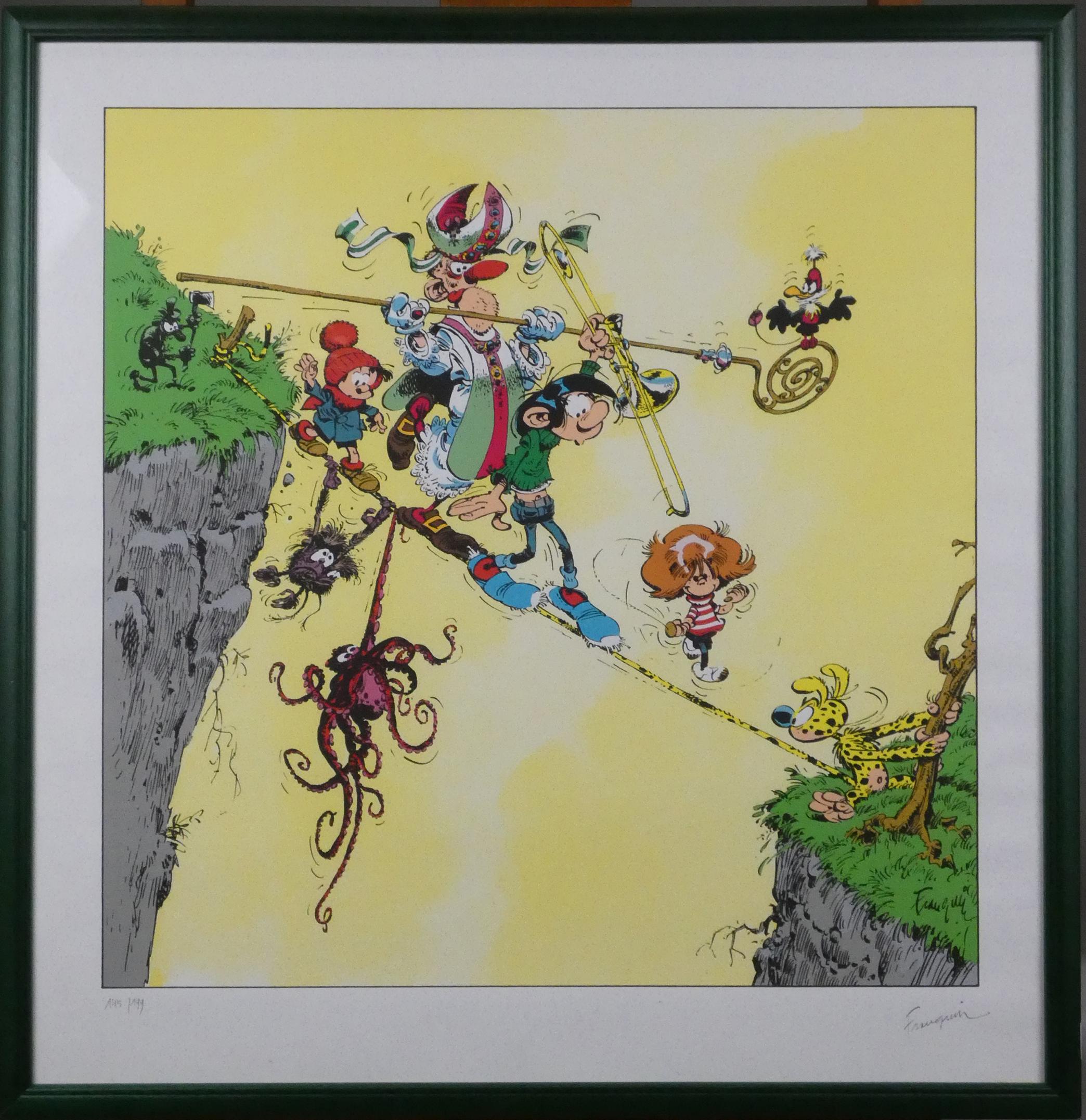 BD: Sérigraphie Gaston -Le Trombone illustré- N° 145/199 signé *FRANQUIN A.* (André) (1924,1997) circa 1996 54x53cm cadre sous verre