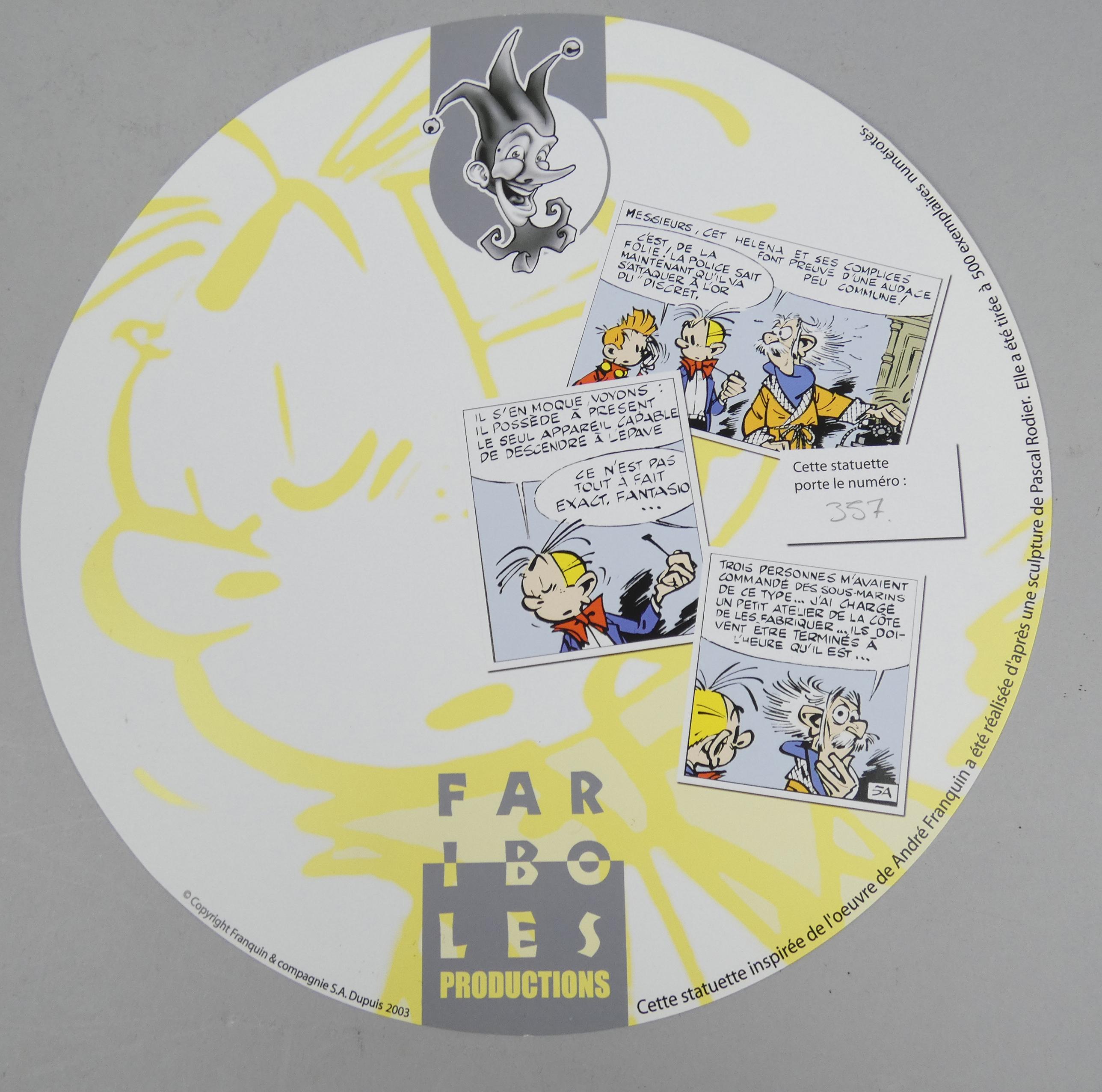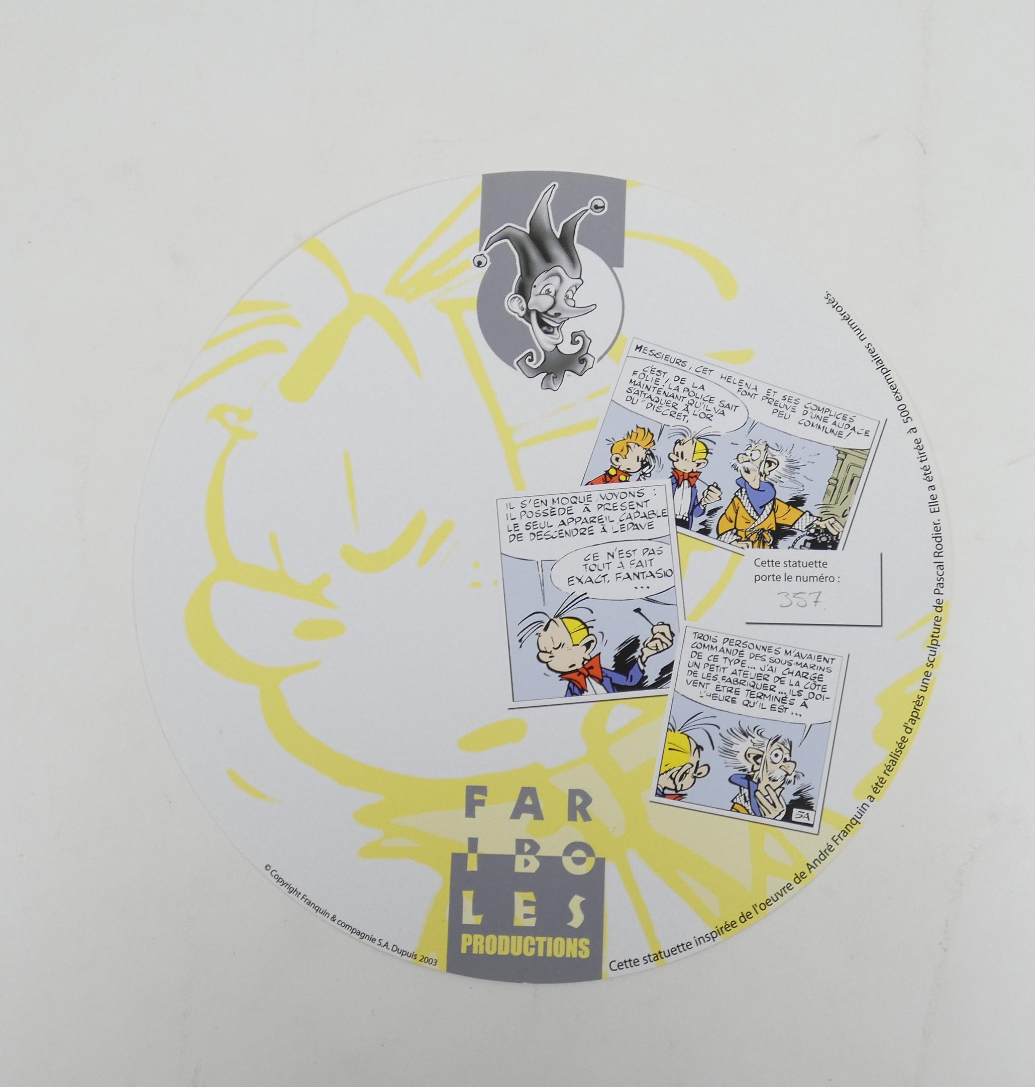 BD: Franquin, création Faribole -Fantasio avec pipe- N° 357/500 (recolle) H:23cm circa 2003 avec sa boite et certificat