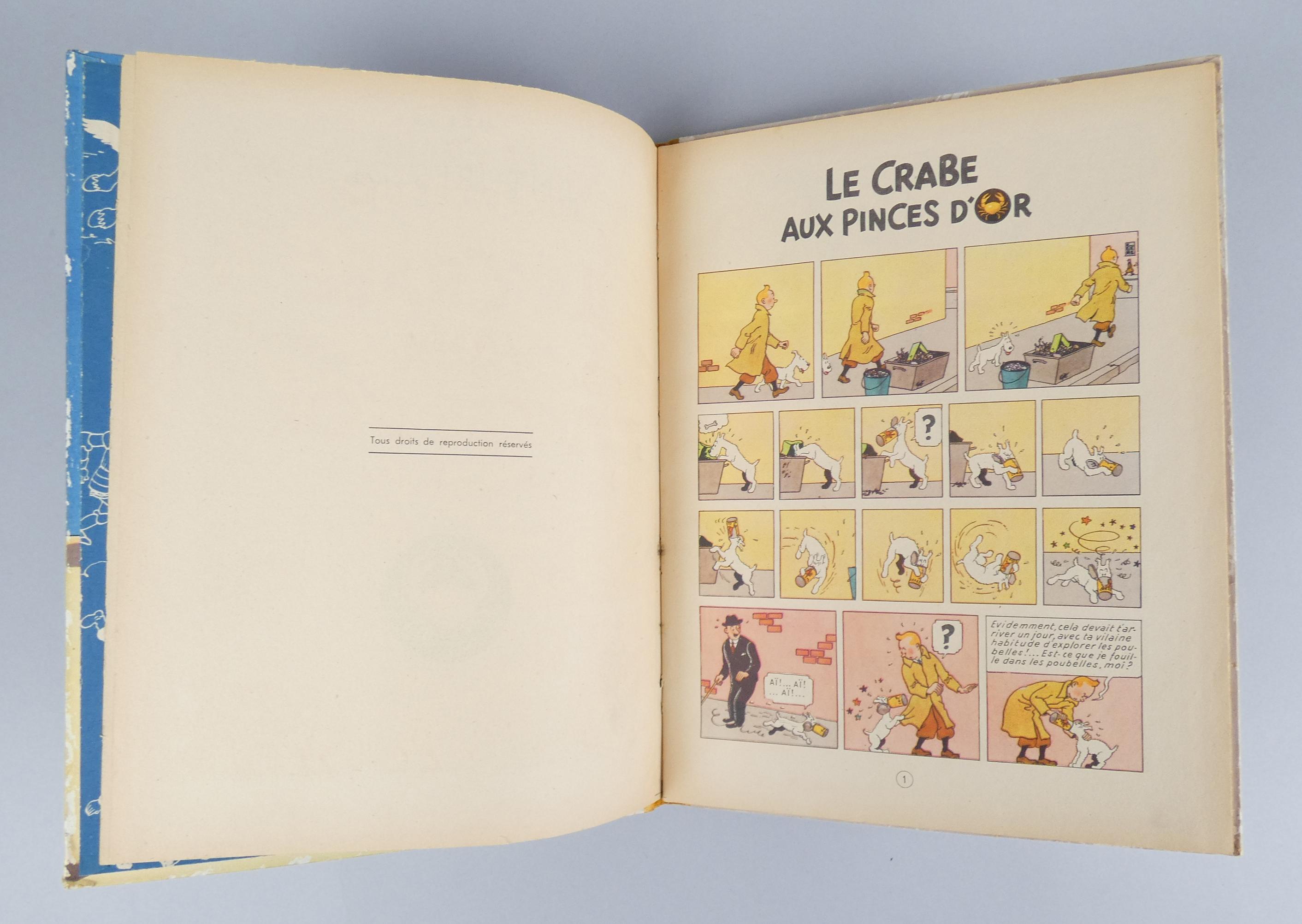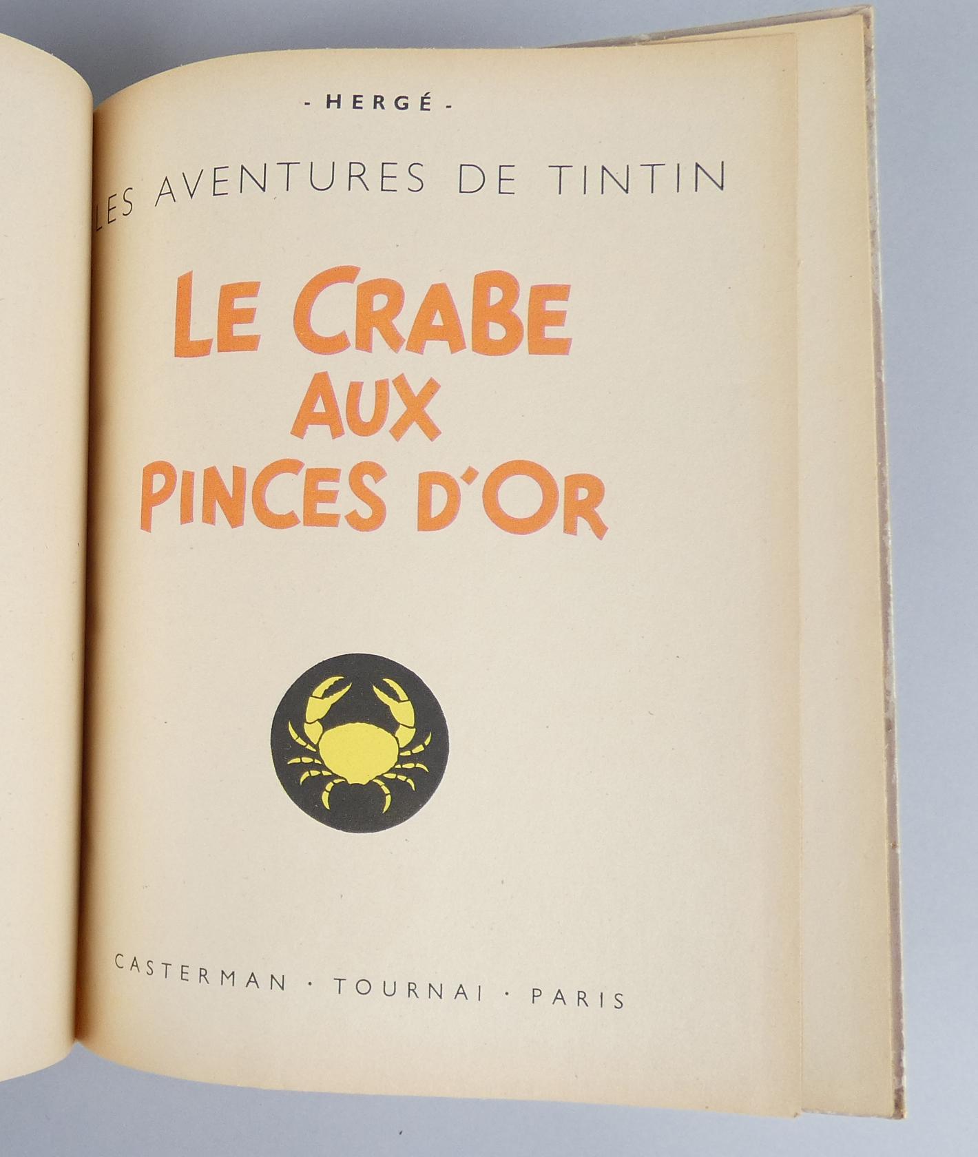 BD: Tintin HERGE éd CASTERMAN EO -Le crabe aux pinces d'or- (Bel état gen, déchirures int) A22 1944 dos jaune très rare, titre rouge (BDM26:8000_)