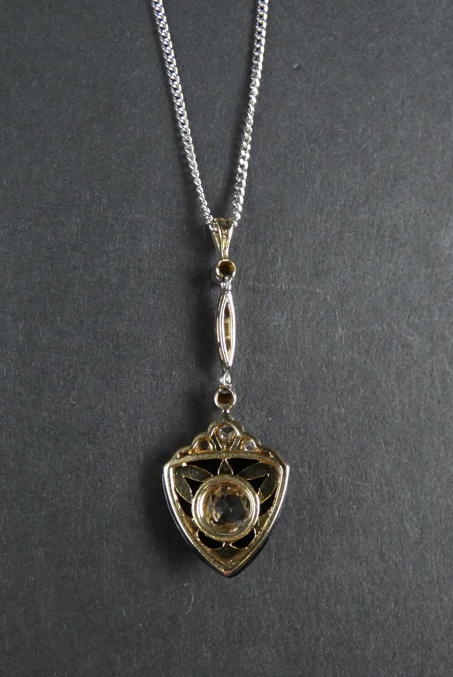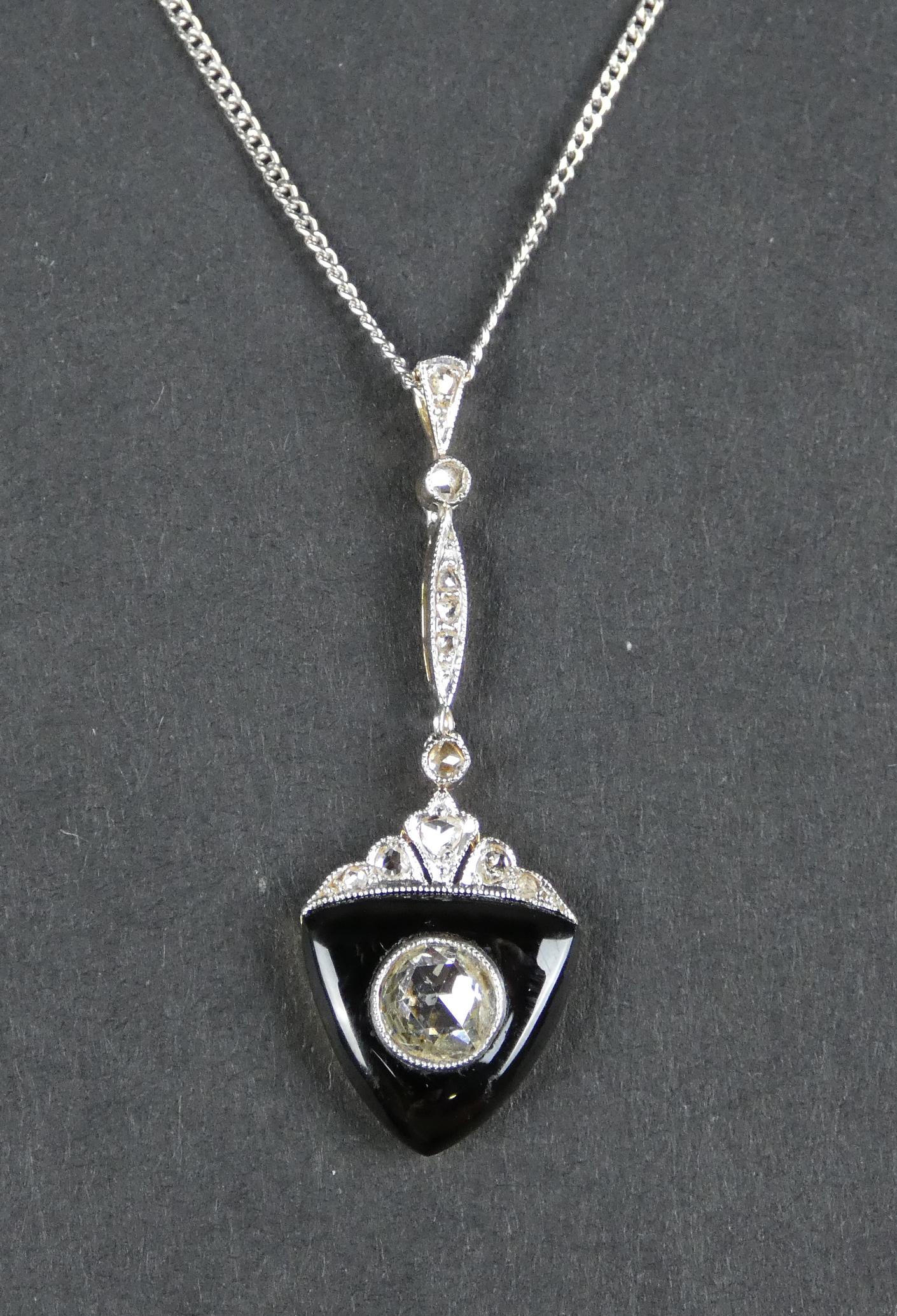 Bijou: Collier/chaine BALESTRA 13VI or blanc 18K et pendentif or jaune 18K et platine serti d'onyx et de diamants dont 1 central taille rose d'env. 0,60cts Tbrut:5g L:46cm H:3,5cm