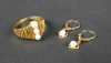 Bijou: Bague (acc) sertie de 3 perles de culture et paire de boucles d'oreilles serties de perles de culture le tout en or jaune 18K P: 4,7g