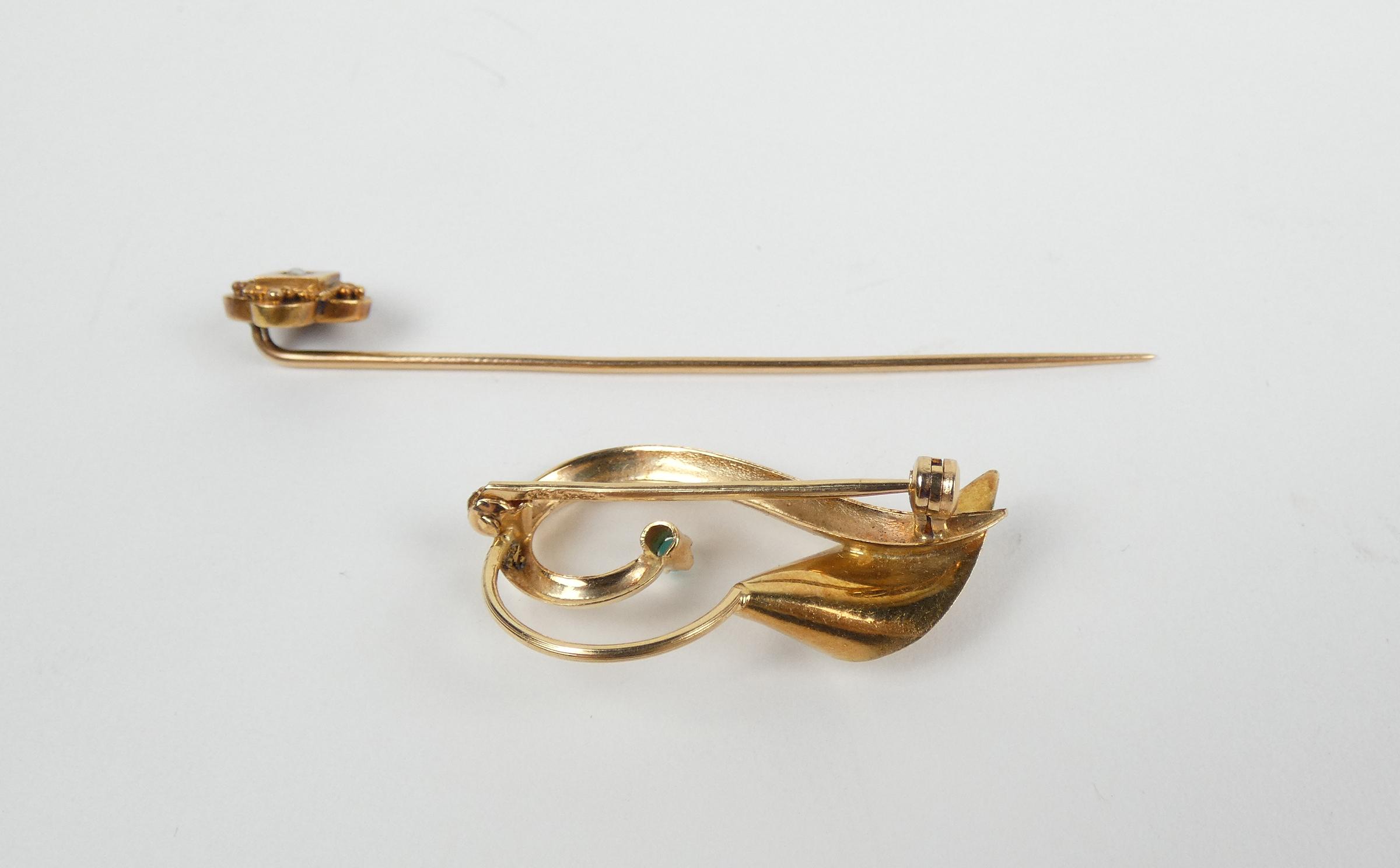 Bijou: Broche sertie d'une perle et épingle de cravate en or jaune 18K P: 5,1g
