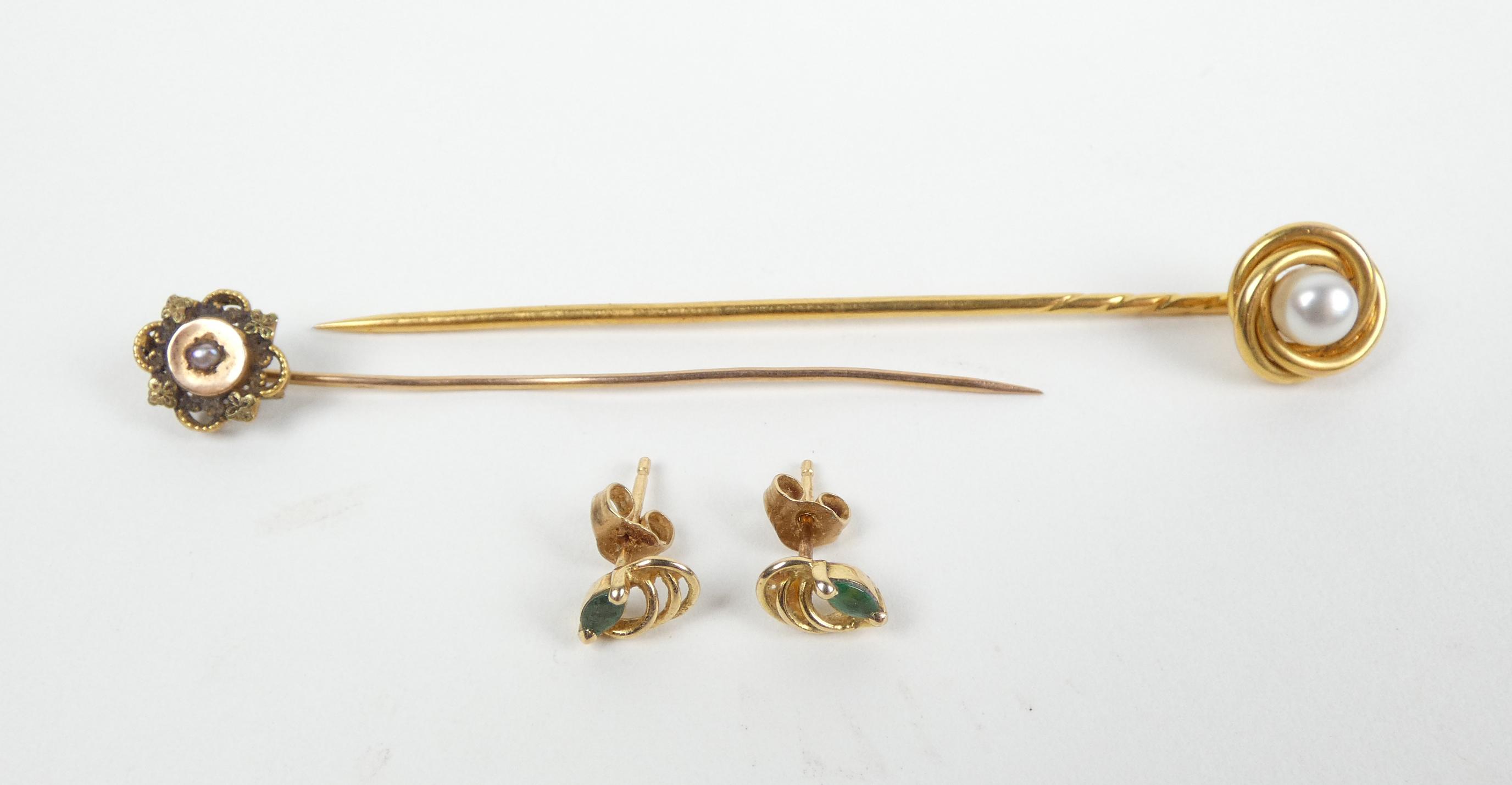 Bijou: 2 Epingles de cravate et paire de boucles d'oreilles en or jaune 18K P: 4,7g (3pcs)