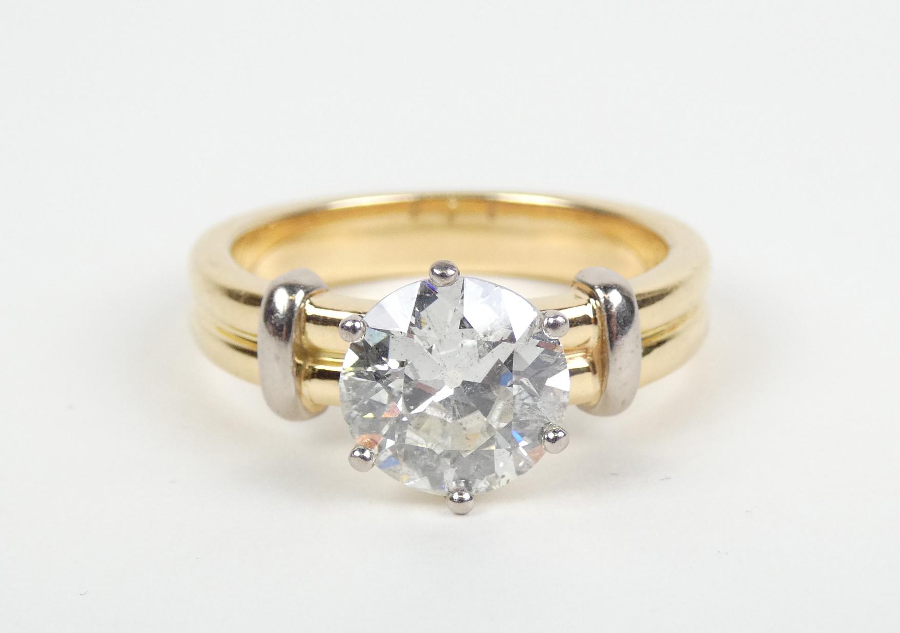 Bijou: Bague en or jaune et blanc 18K sertie d'un diamant solitaire d'env. 2,60cts pureté estimée I P: 10,5g TDD: 62