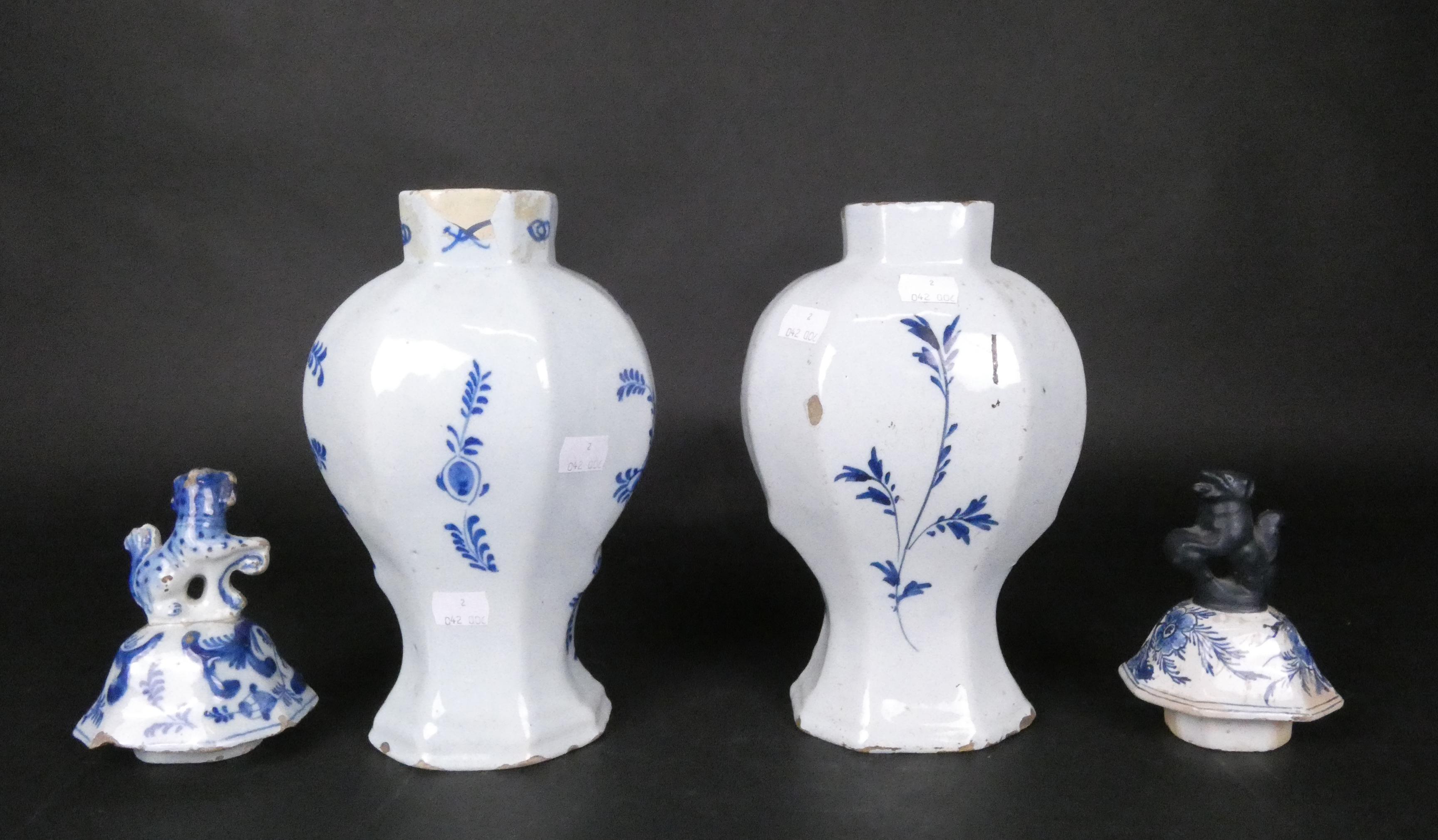 Céramique : 2 potiches couvertes DELFT en faïence 18eS (ds l'état)