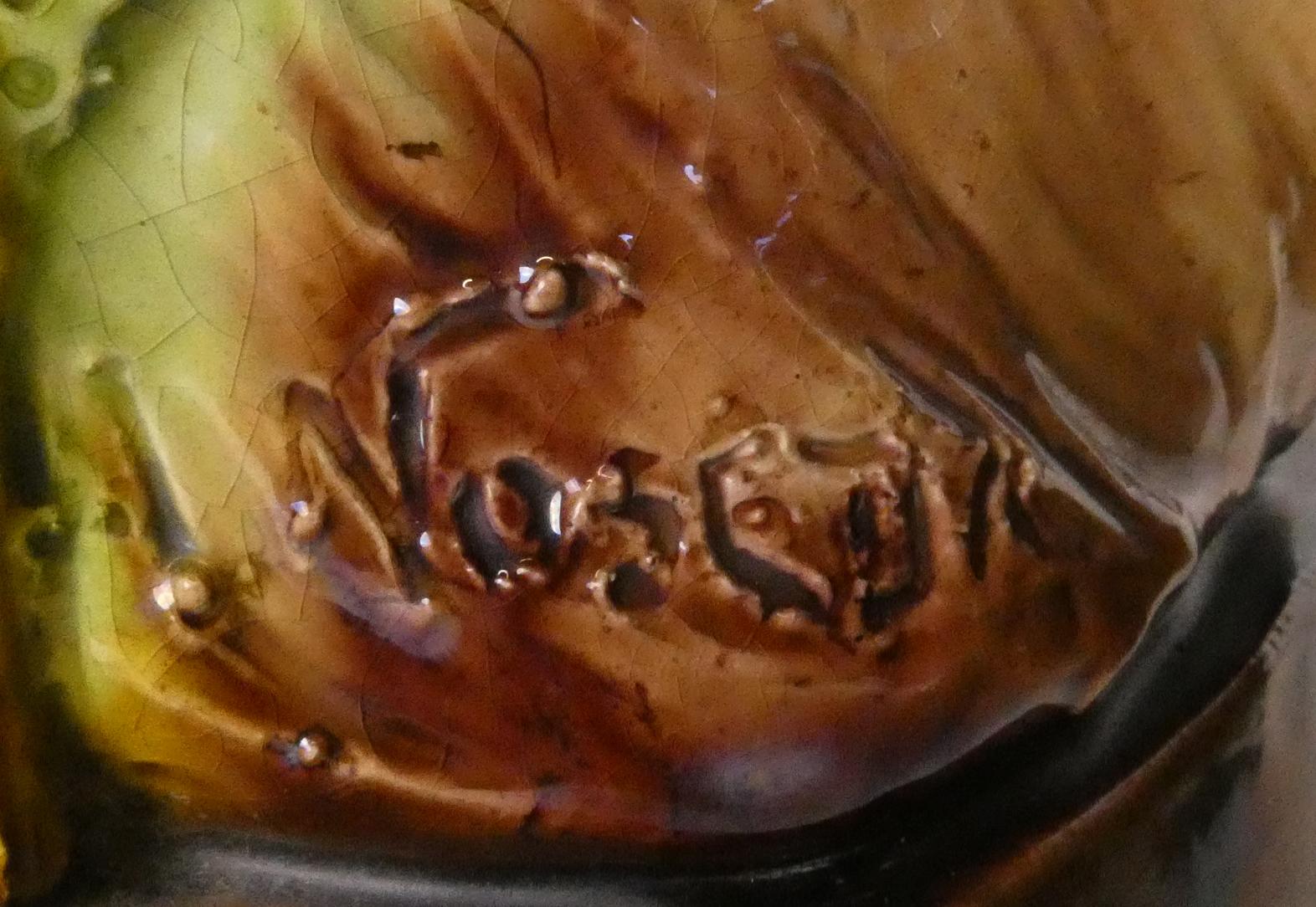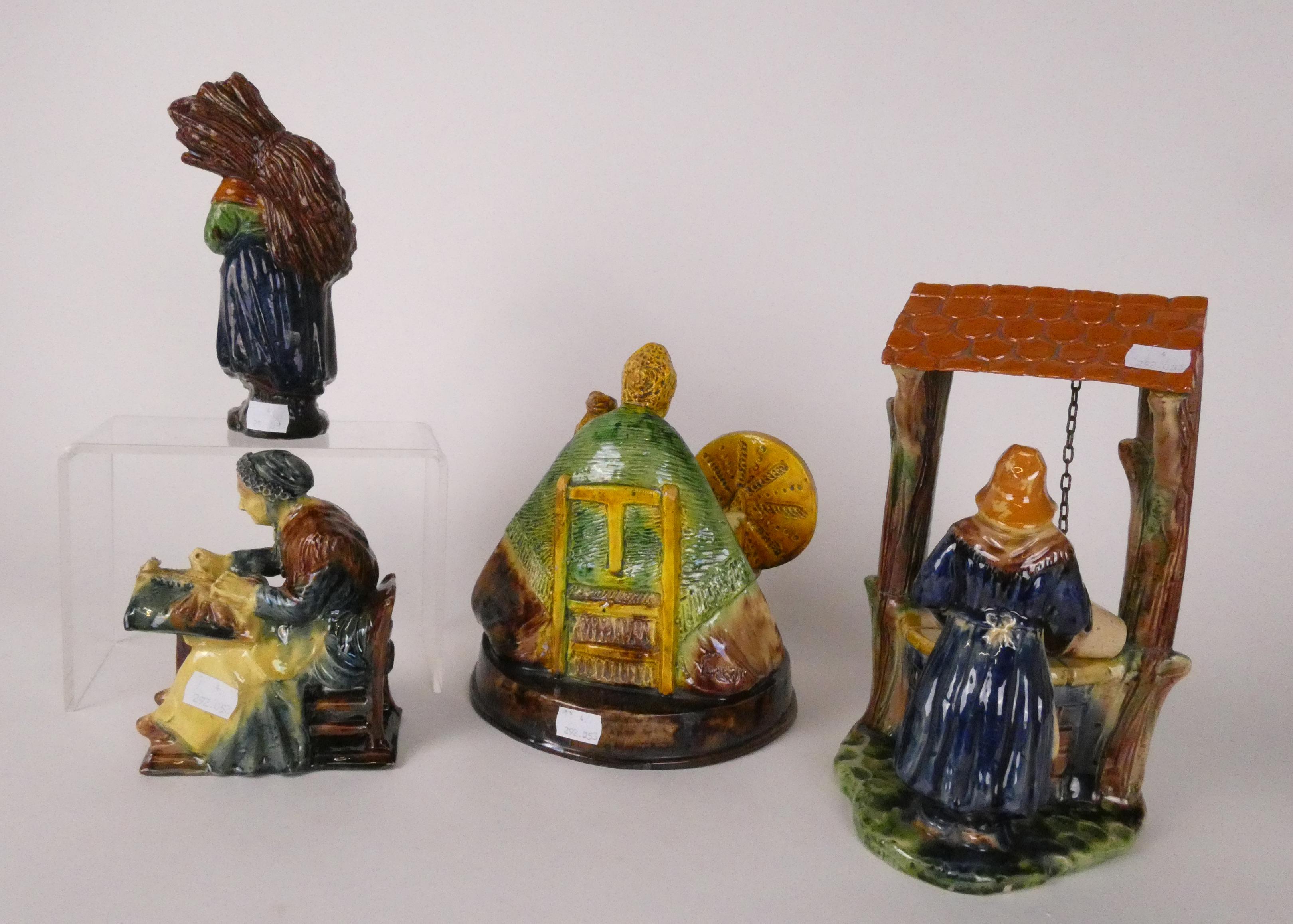 Céramique: Lot de sculptures en faïence (4pcs) (1 rest, egr) dont 1 signé *NOSEDA A.* (Alfons) (1885, 1945) H+grd:27cm