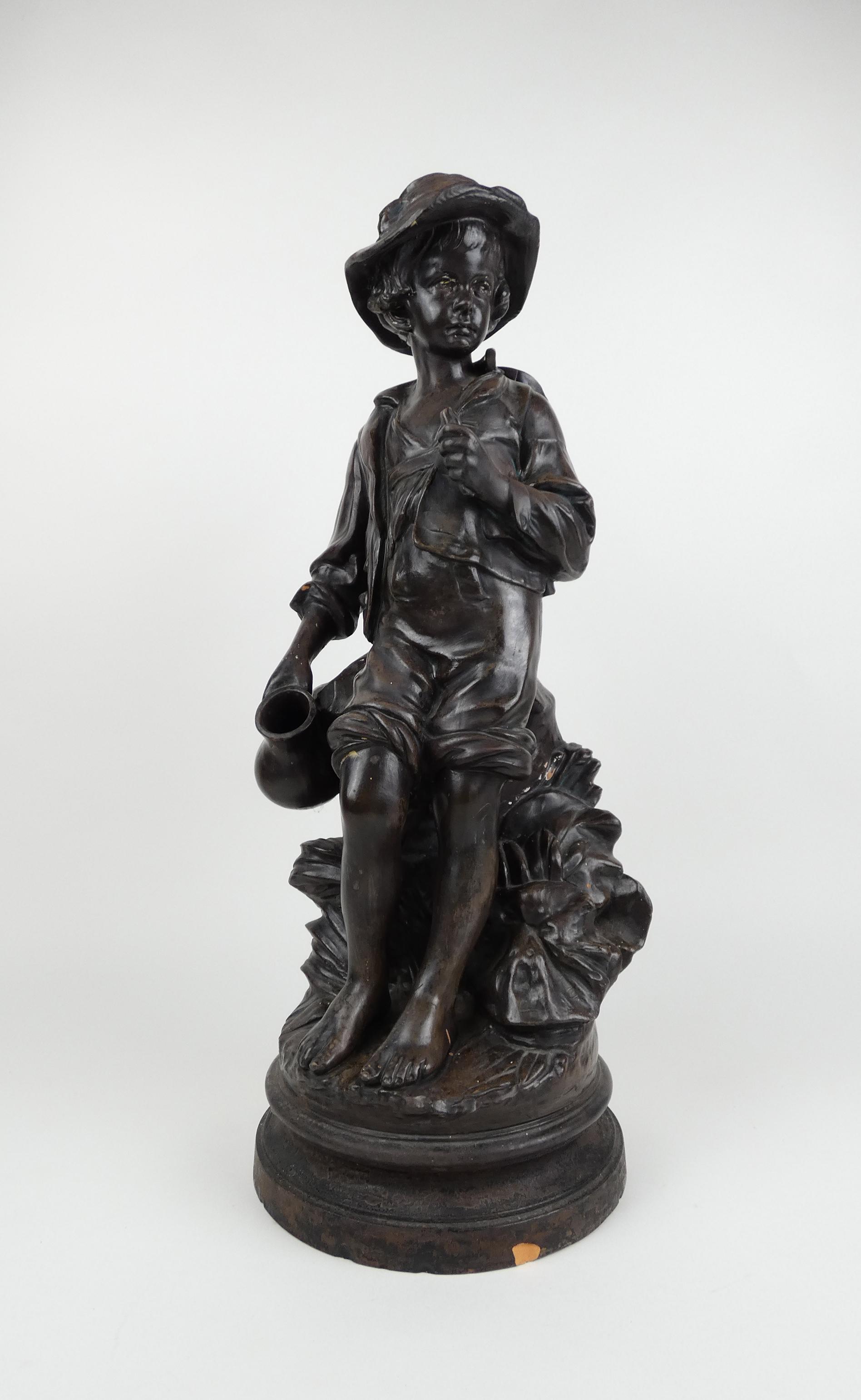 Sculpture: Terre cuite -jeune garçon- (pt ecl) attribué à Sarreguemine H:59cm