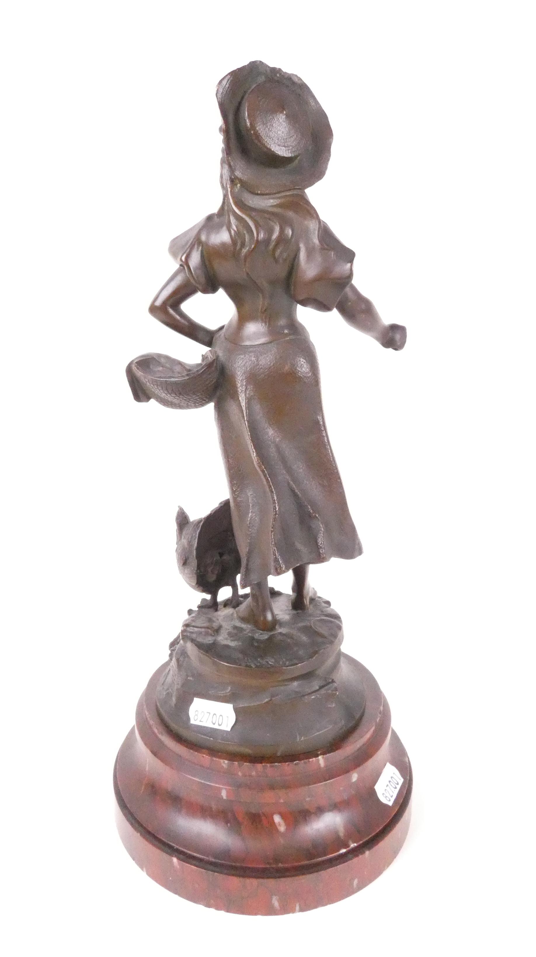 Sculpture: Bronze jeune femme au dindon -La Mascotte- (acc, mq) signé *DE WEVER A.* (Auguste) (1836, 1910) H:32cm sur socle rapporté en marbre (pt ecl)