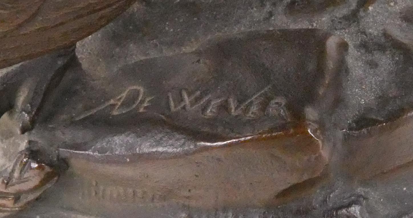Sculpture : Bronze jeune femme au dindon - La Mascotte - (acc , mq) signé DE WEVER Auguste