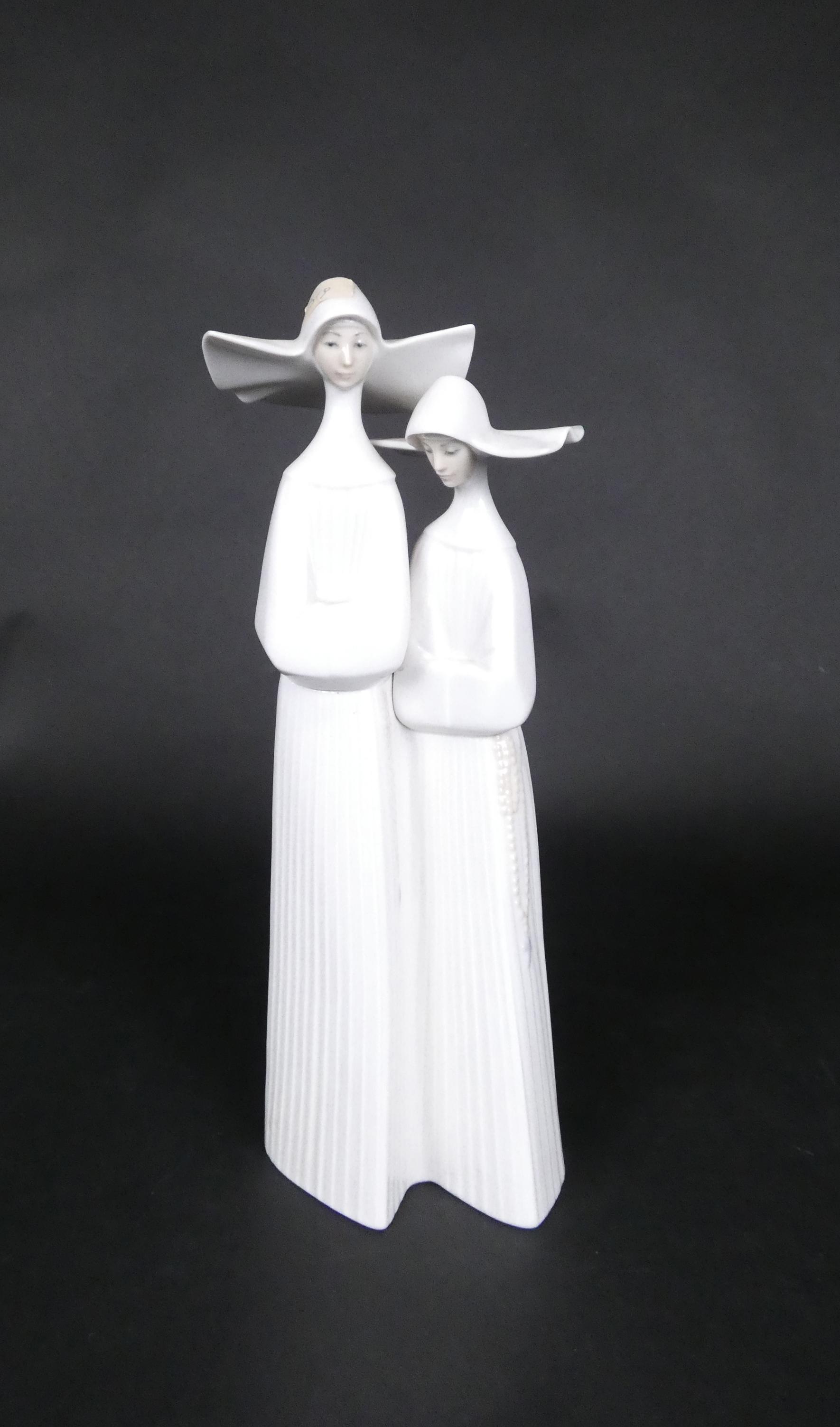 Céramique : Porcelaine de LLADRO Espagne - 2 Nonnes - 20eS H : 33 , 5cm