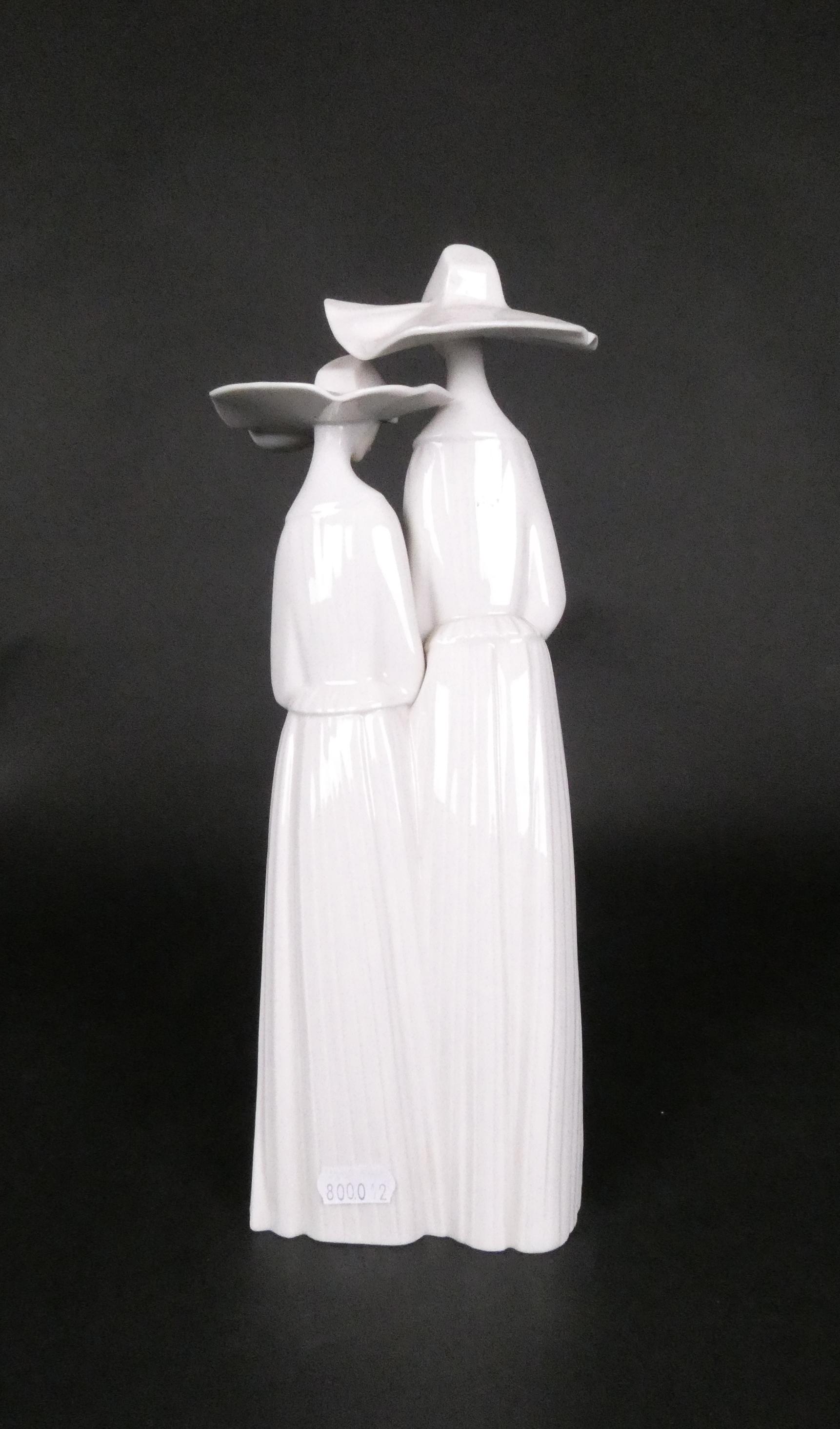 Céramique: Porcelaine de LLADRO Espagne -2 Nonnes- 20eS H:33,5cm