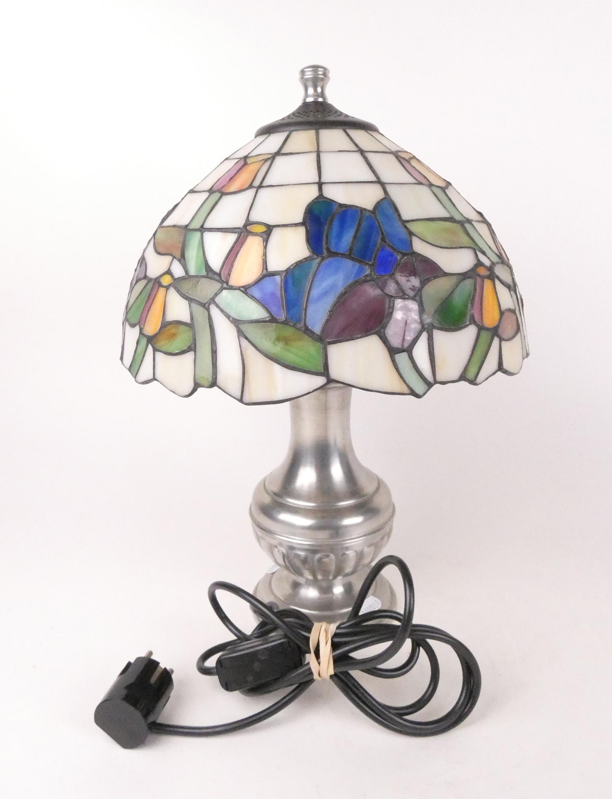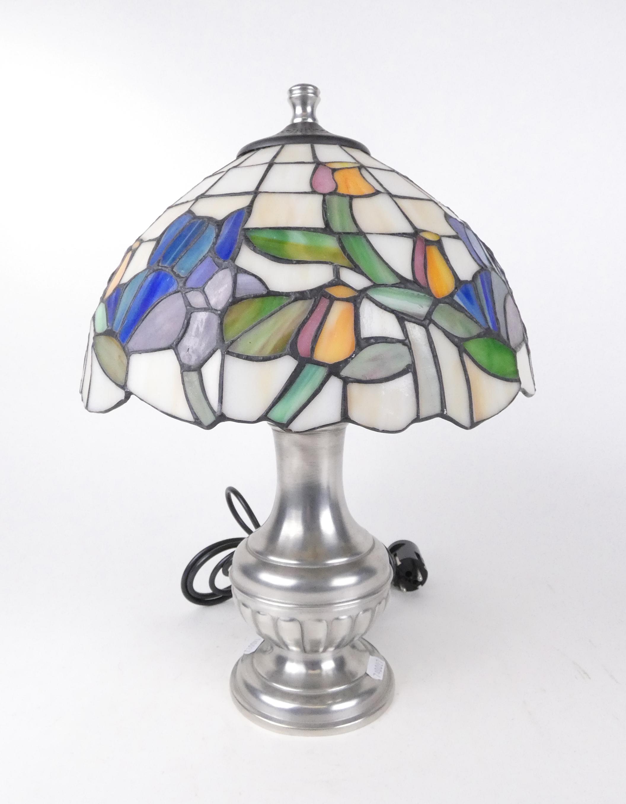 Luminaire: lampe de table dans le goût de TIFFANY piètement en étain Potstainiers Hutois H:42cm