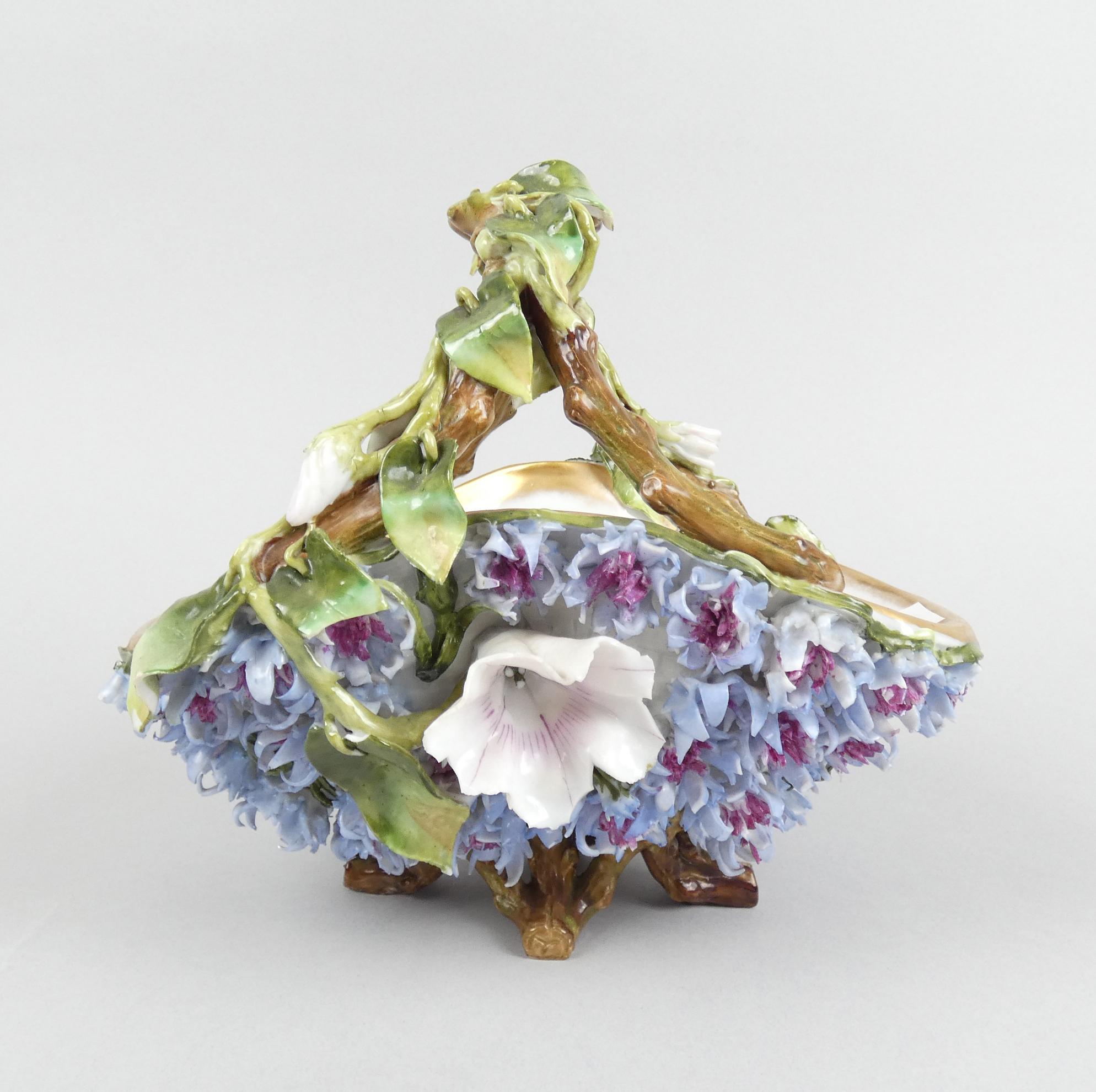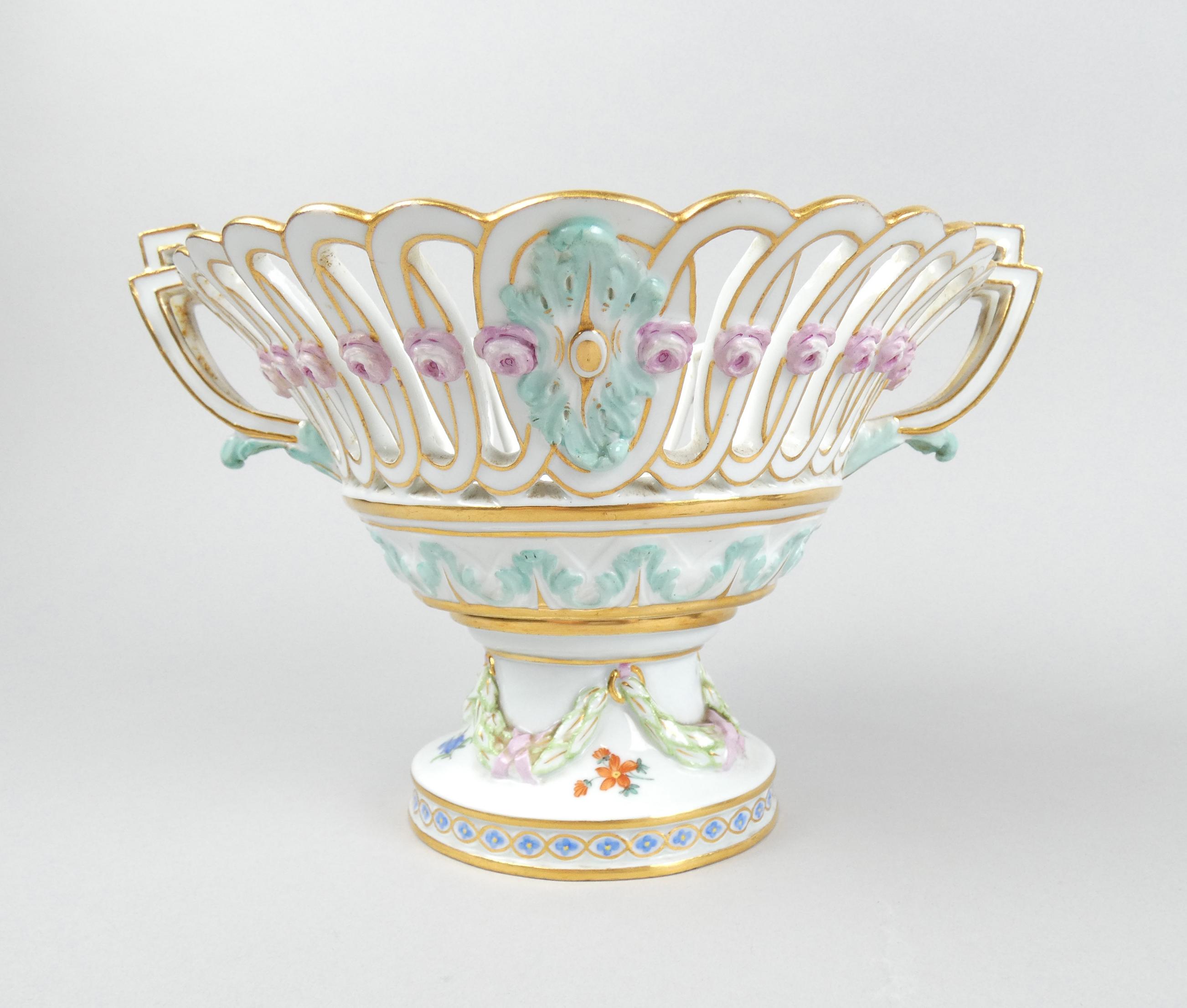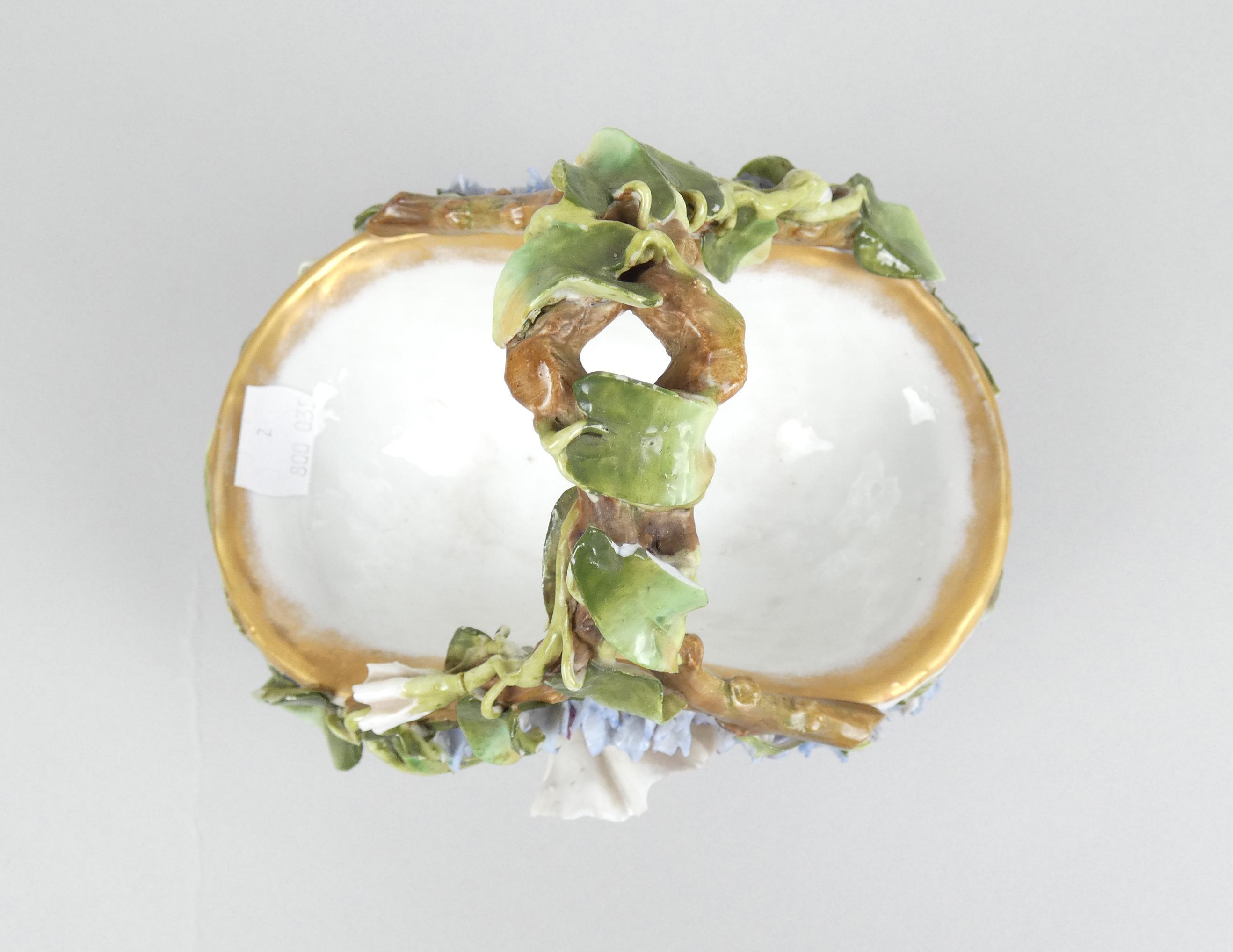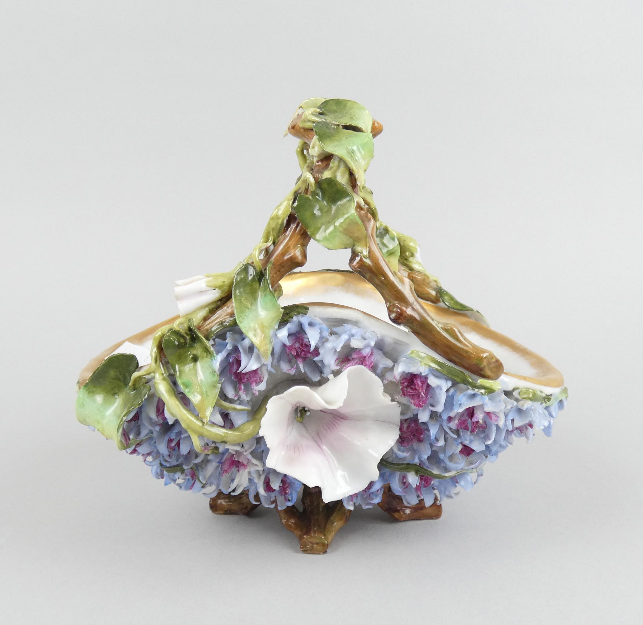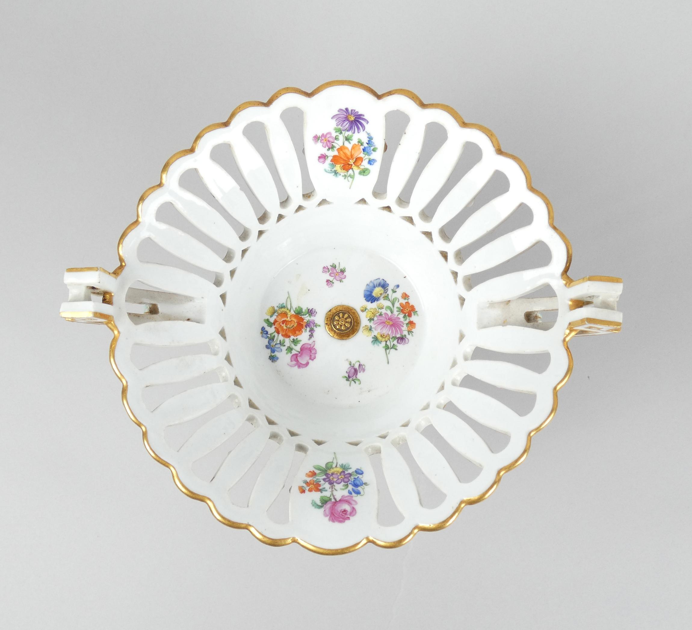 Céramique: 2 corbeilles en porcelaine (pt ecl sur une): 1 ajourée et 1 avec décor de fleurs H:+/-17cm