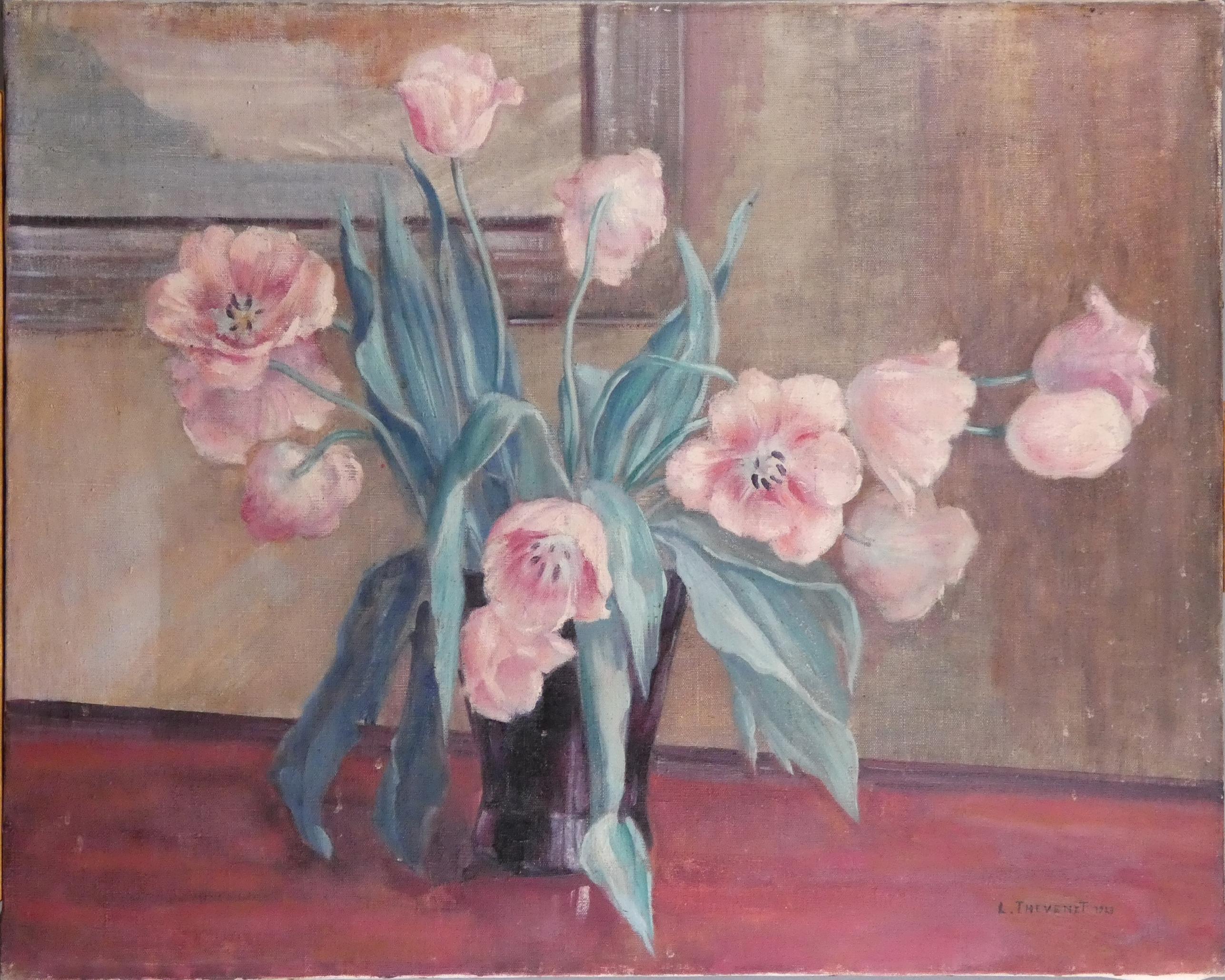 Tableau HST -Vase de fleurs- daté 1923 signé *THEVENET L.* (Louis) (1874, 1930) 60x74,5cm sans cadre