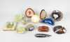 Collection : Agate dont vide - poche et tranches (7) onyx vide - poche , boite (écl) et briquet de table (4) sphère en calcite jaune? (1) fossile orthoceras (1) (13pcs)
