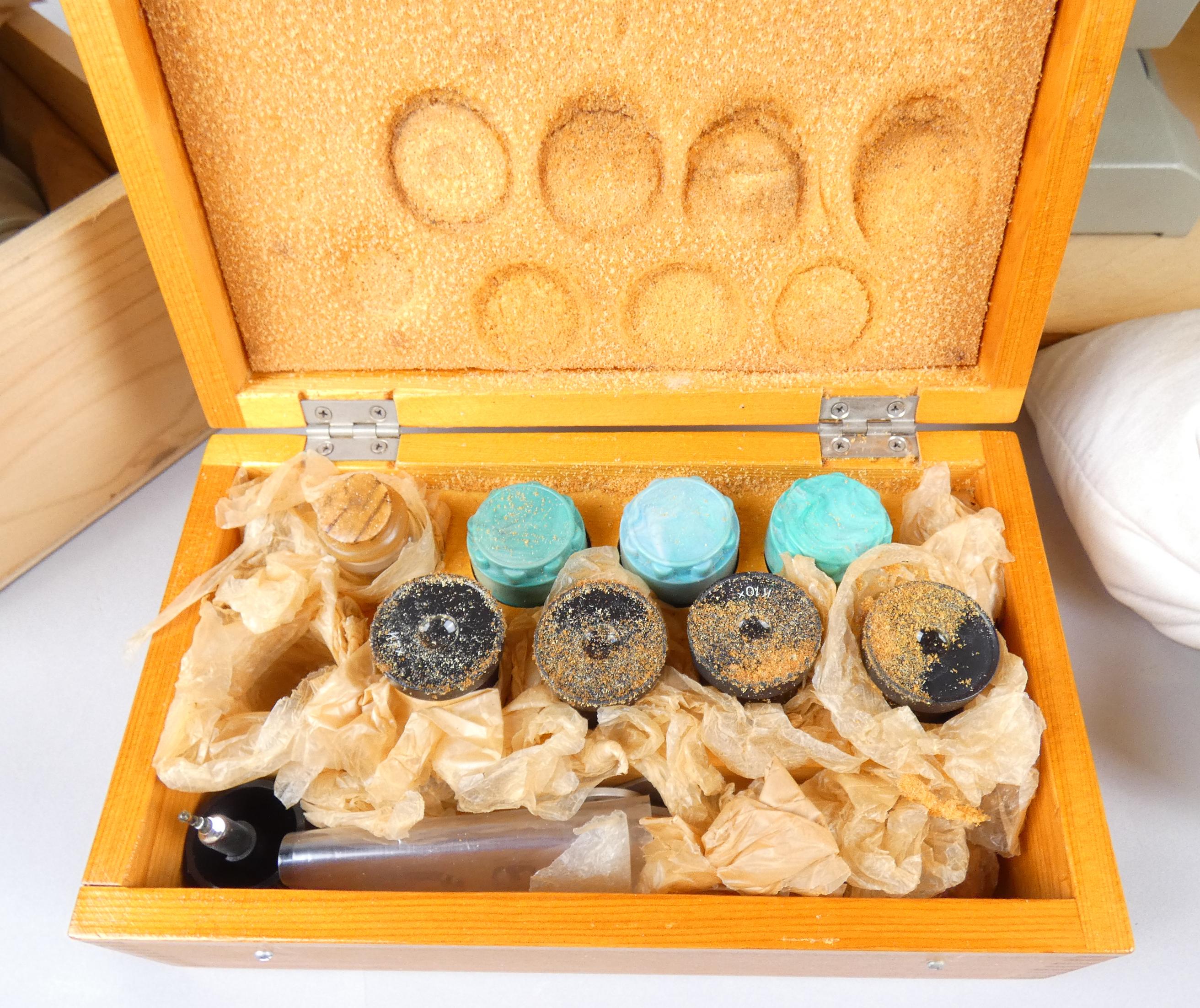 Scientifique : Microscope modèle Viking avec optique OMO made in USSR dans sa boite avec coffret d'accessoires optiques