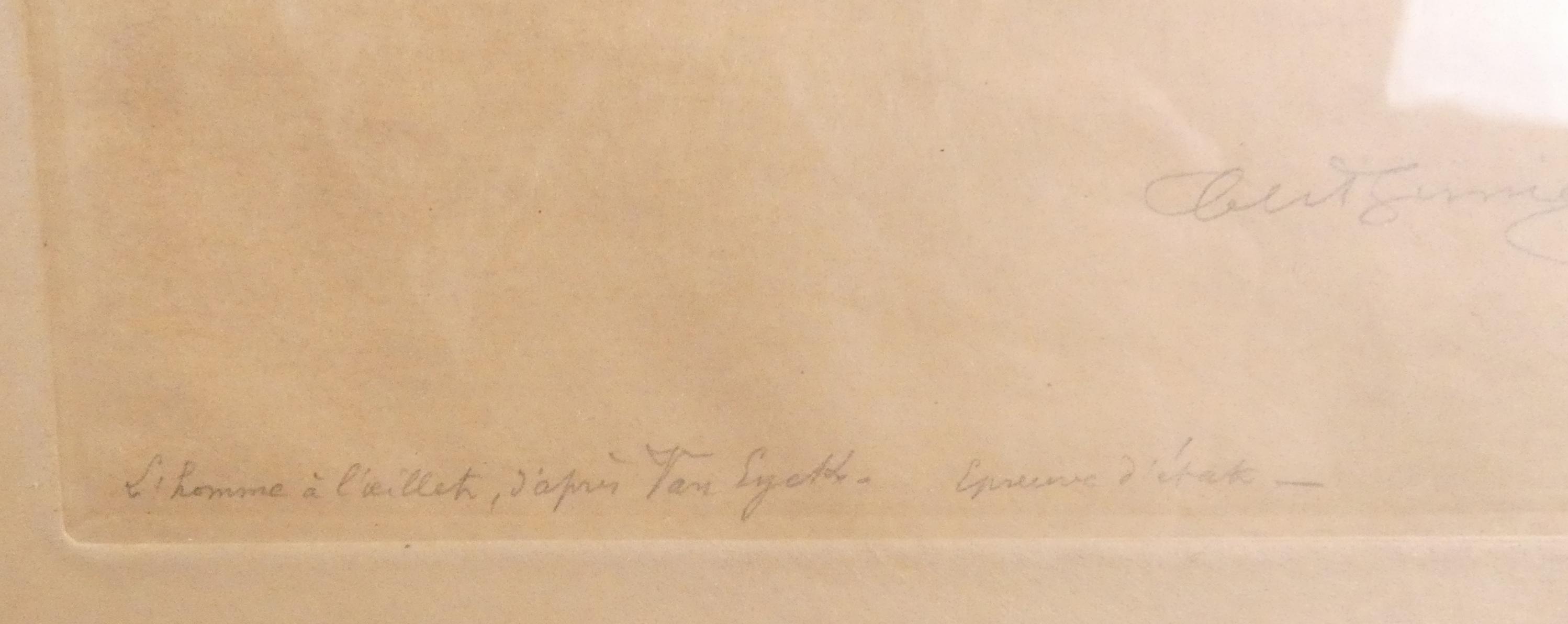 Estampe : Eau - forte - L'homme à l'Oeillet d'après Van EYCK - daté 1903 Epreuve d'Etat signé BERNIER Charles
