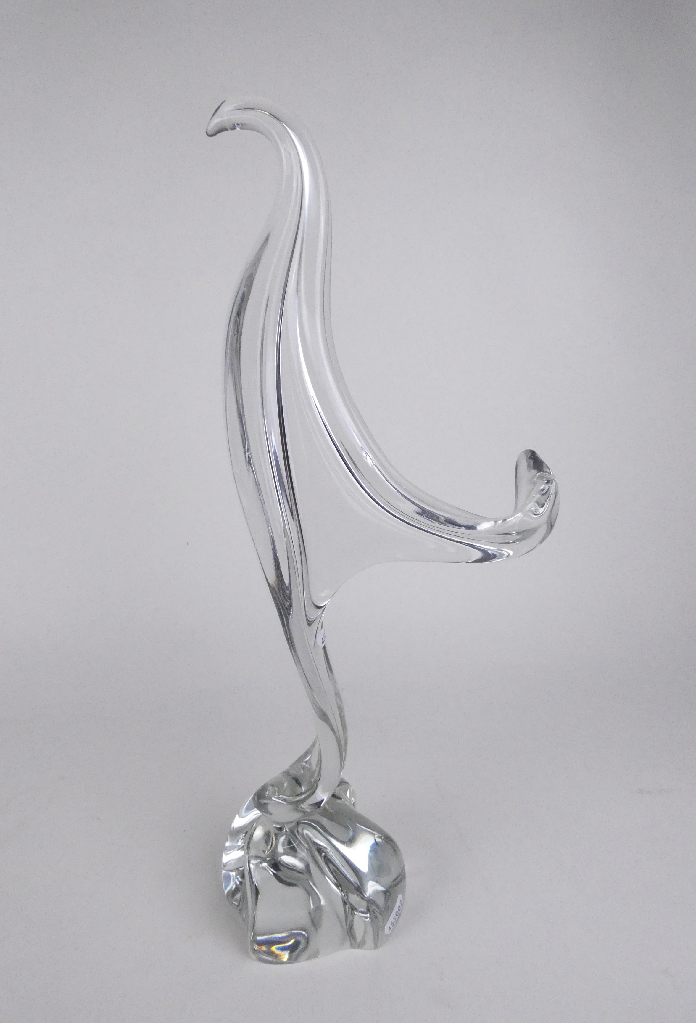 Verrerie: Coq stylisé en cristal (1 egr) signé Daum France H:53,5cm