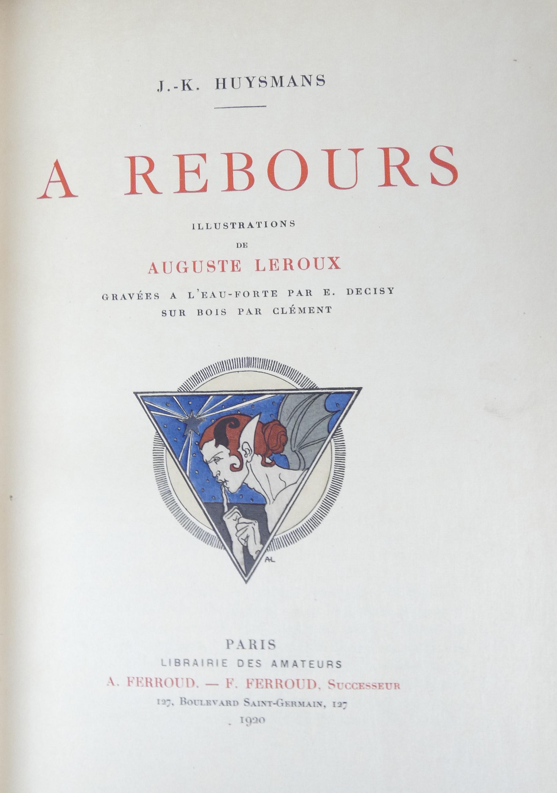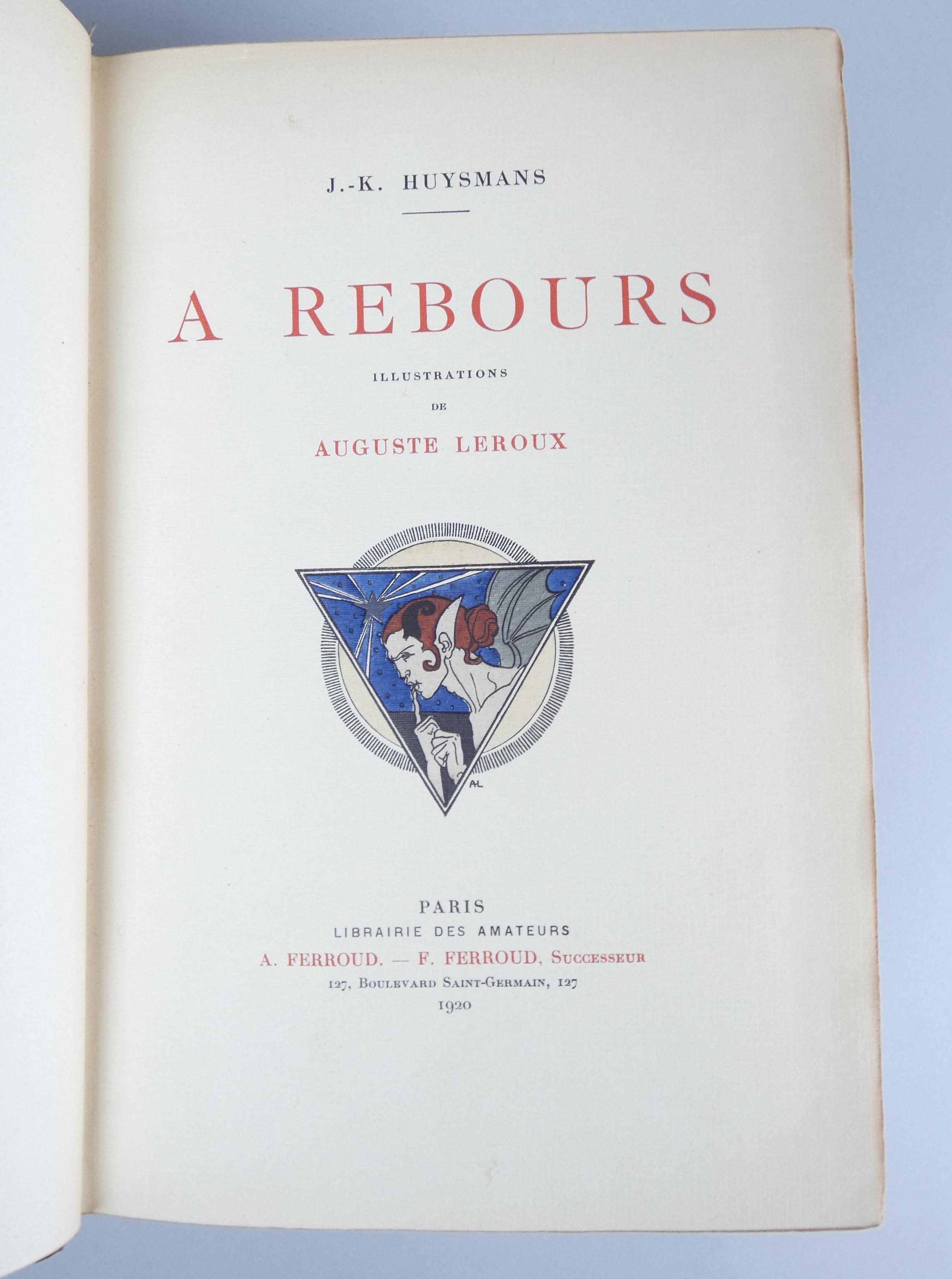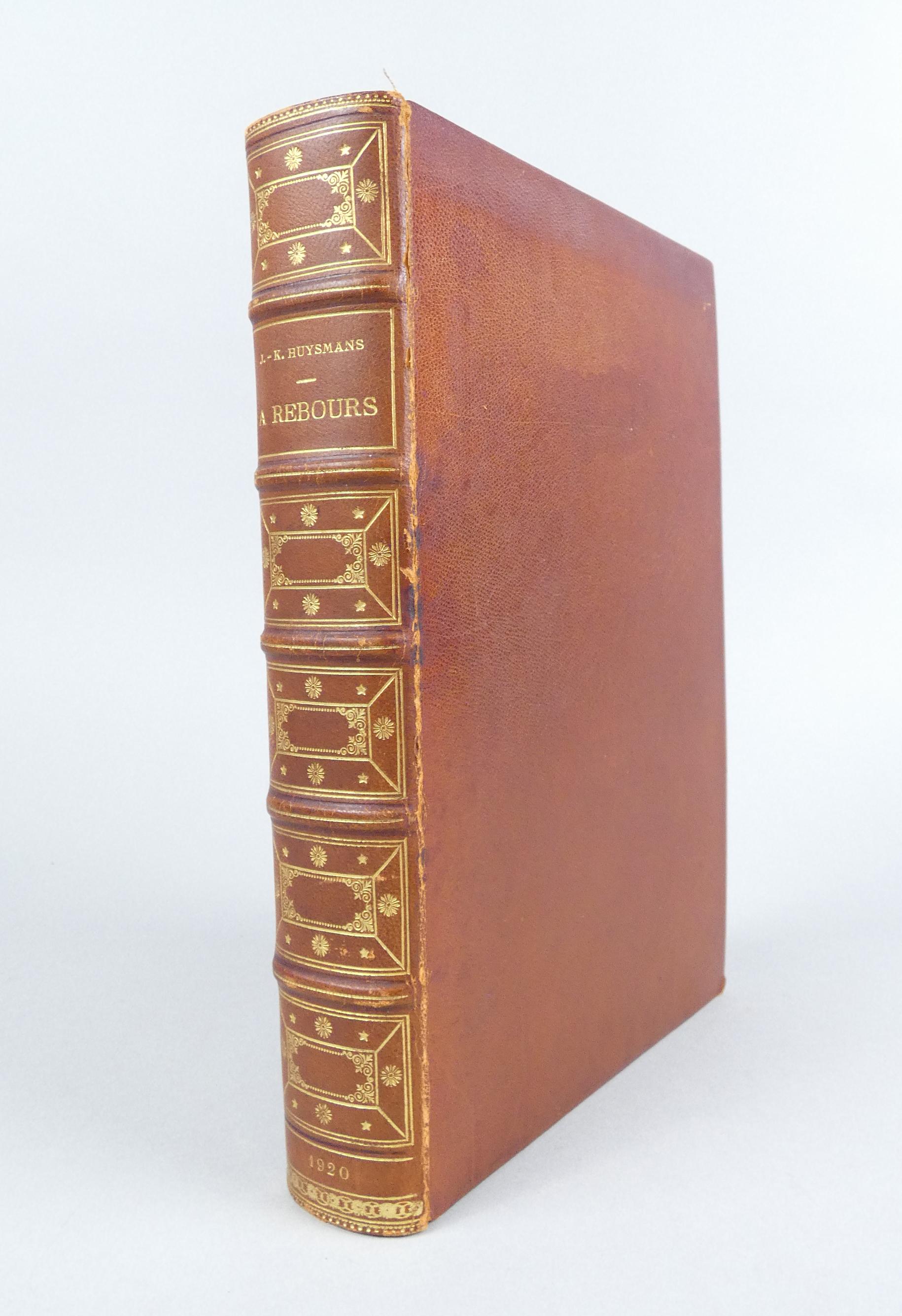 Livre: -A REBOURS- de HUYSMANS J. in-8 éd FERROUD Paris 1920 cuir brun dos à ner
