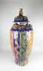 Asiatique: Jarre/potiche couverte en faïence Chine (rest, pt ecl) décor de végét
