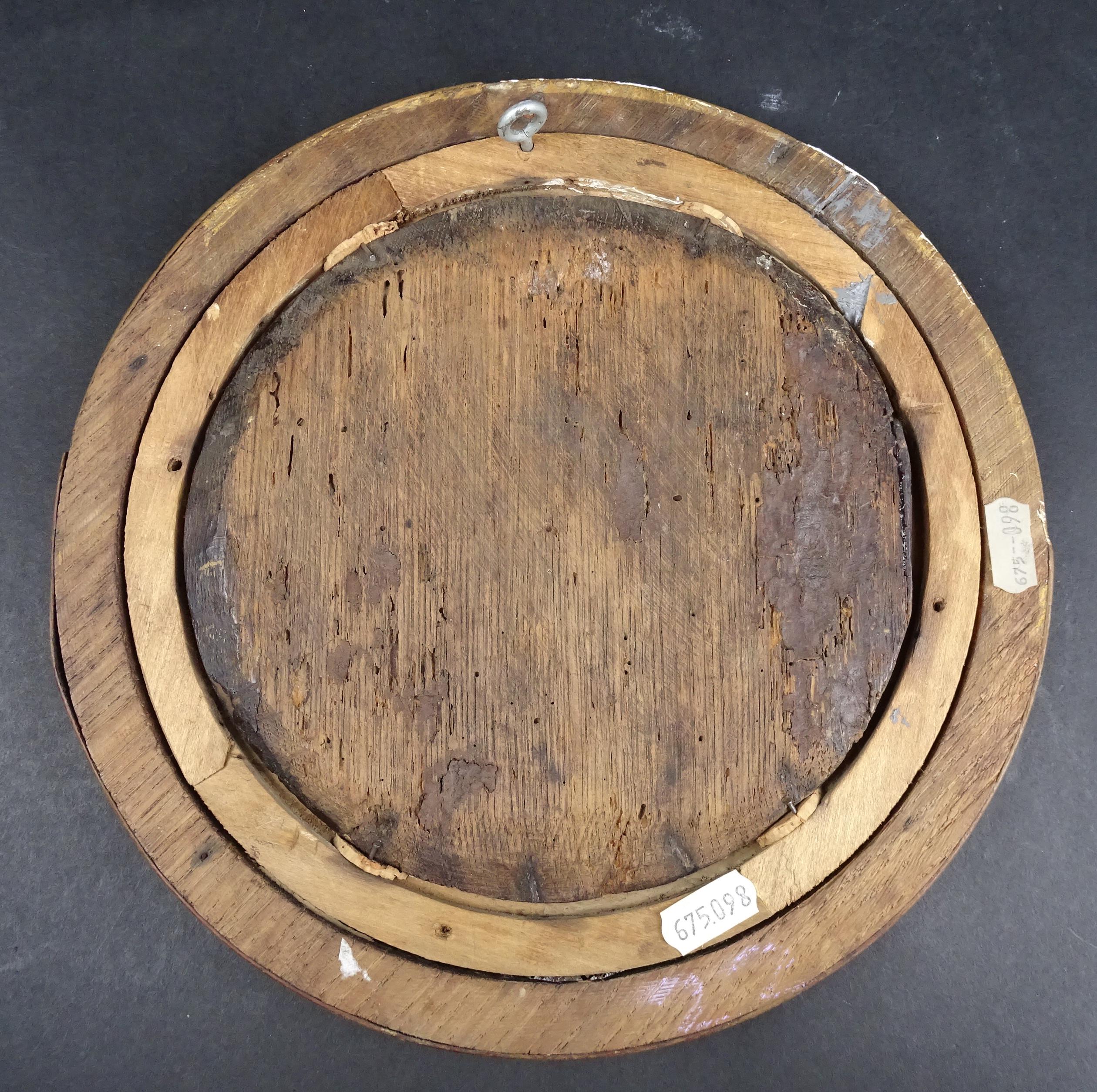 Tableau HSB -Suzanne et les vieillards- anonyme 17eS diam:17,5cm cadre rond doré (restaurations anciennes)