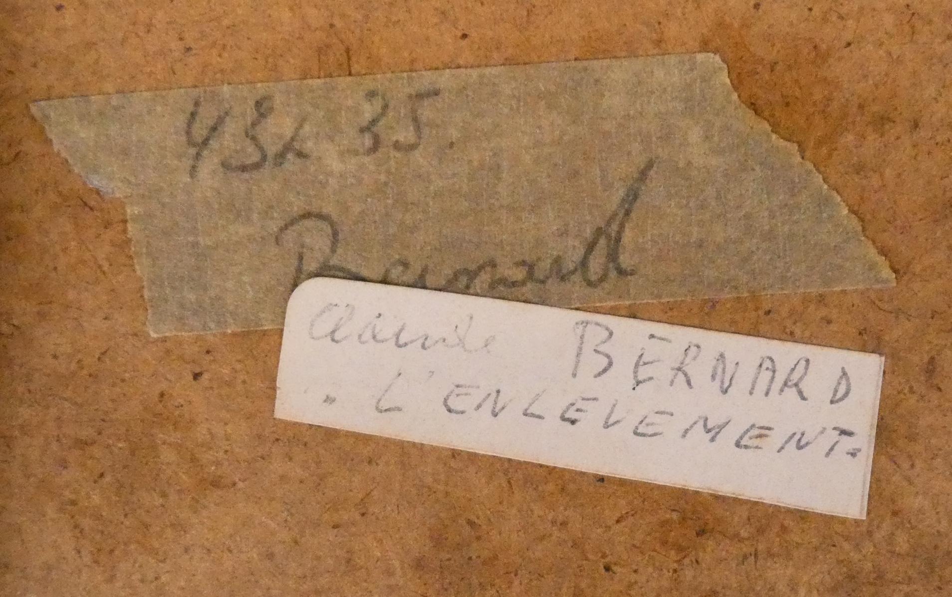 Tableau: dessin sanguine -L'Enlèvement- signé *BERNARD C.* (Claude) (1924, 2020) 28x19cm cadre alu sous plexi