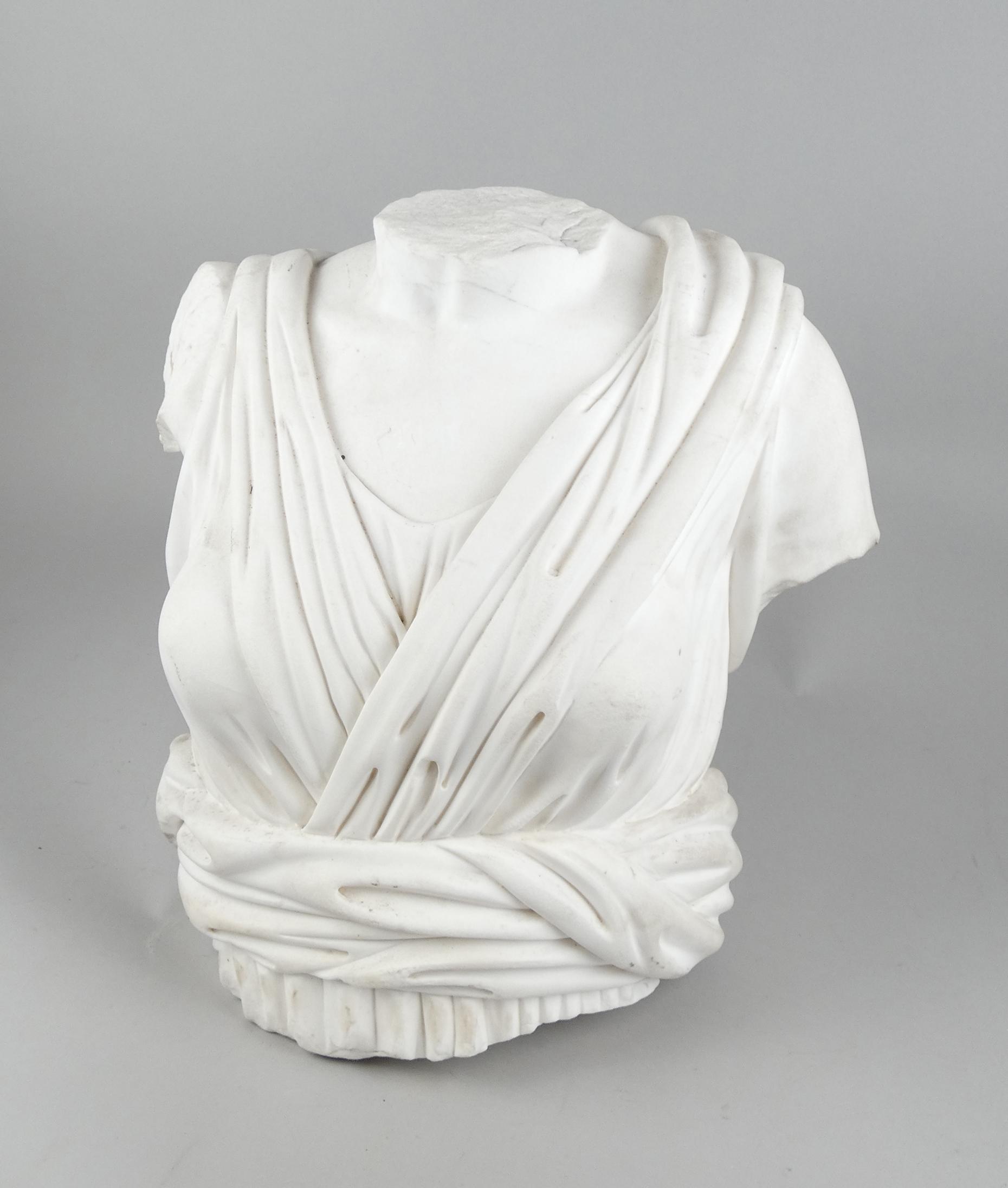 Sculpture: Buste ancien à l'antique en marbre blanc de Carrare -Diane chasseresse- 41x42x33cm