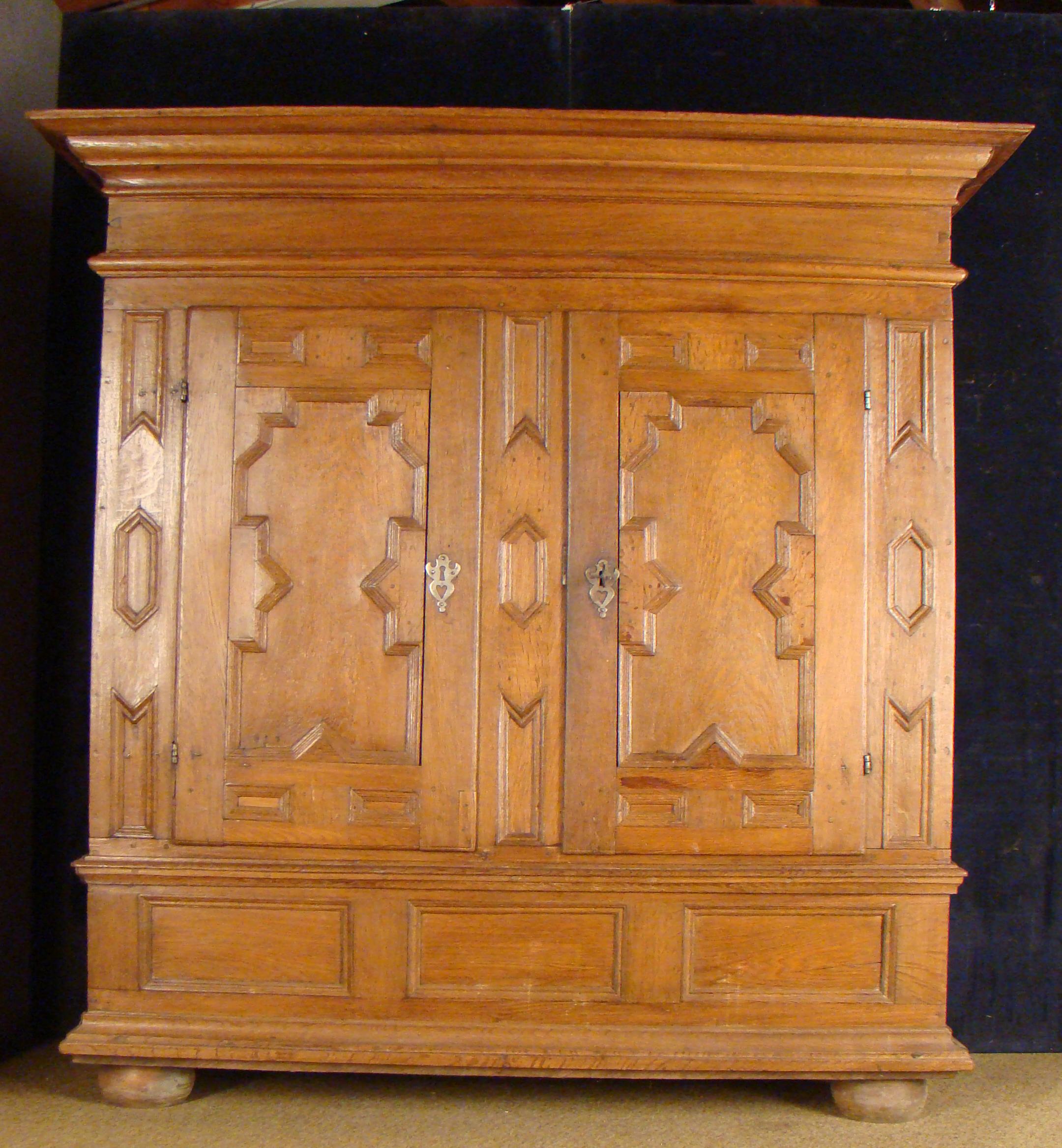 Garde-robe allemande 17eS en chêne 2P à panneaux moulurés dormant et montants mo