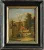 Tableau HSB de chene (fente) -Chien à la niche- trace de signature bas droite fin 18e début 19eS marque S au dos au fer rouge 28,5x23cm cadre bois