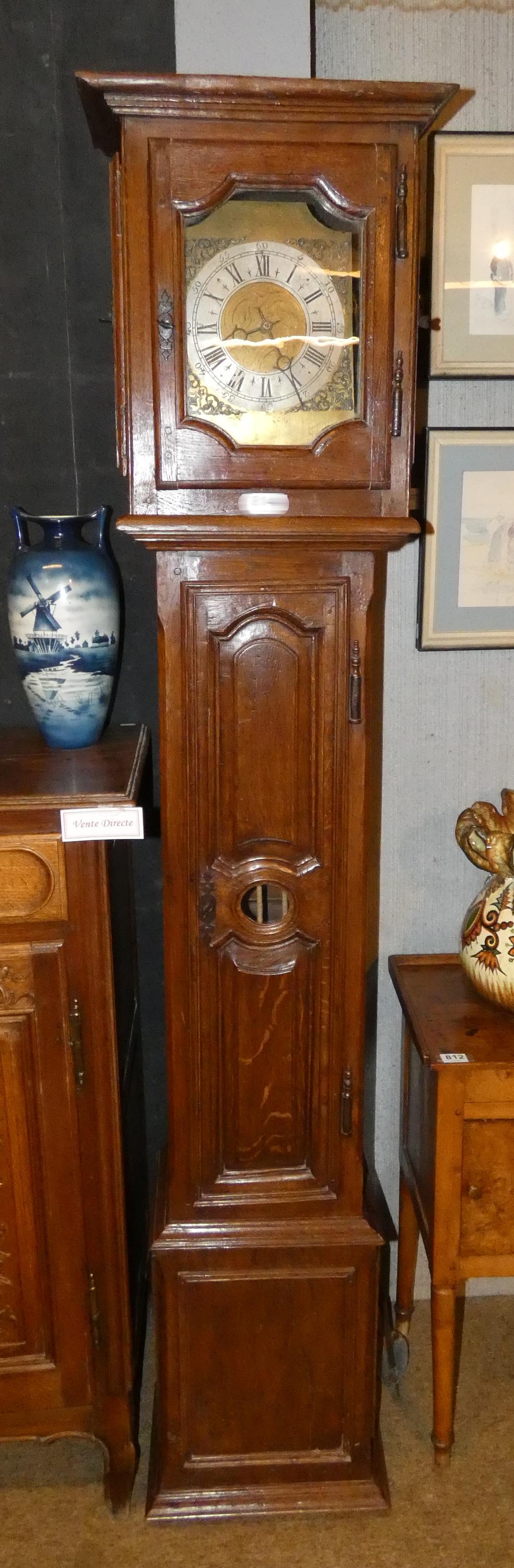 Meuble: Horloge de parquet mvt liégeois porte à oculus 199x38x26cm