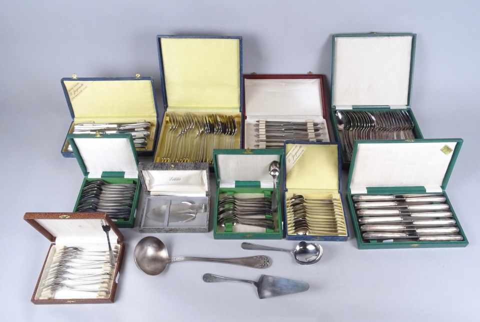 Argenterie: Ménagère 12 couverts en métal argenté: 46pcs + 2 couverts à servir +GERO ZILMETA 60pcs + 2 couverts à servir (110pces)