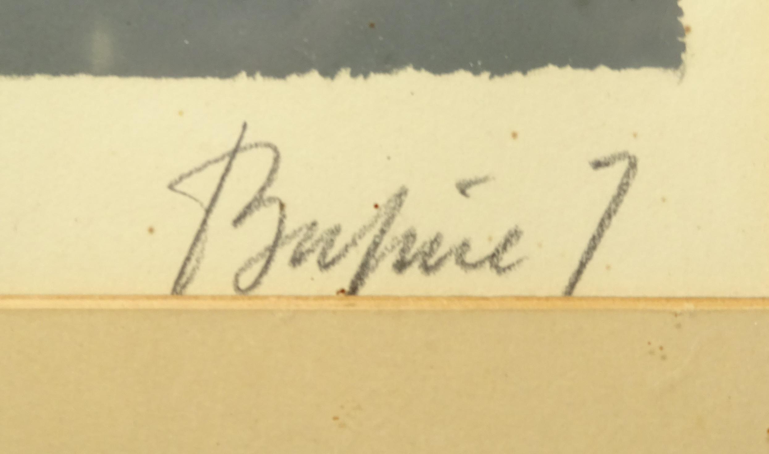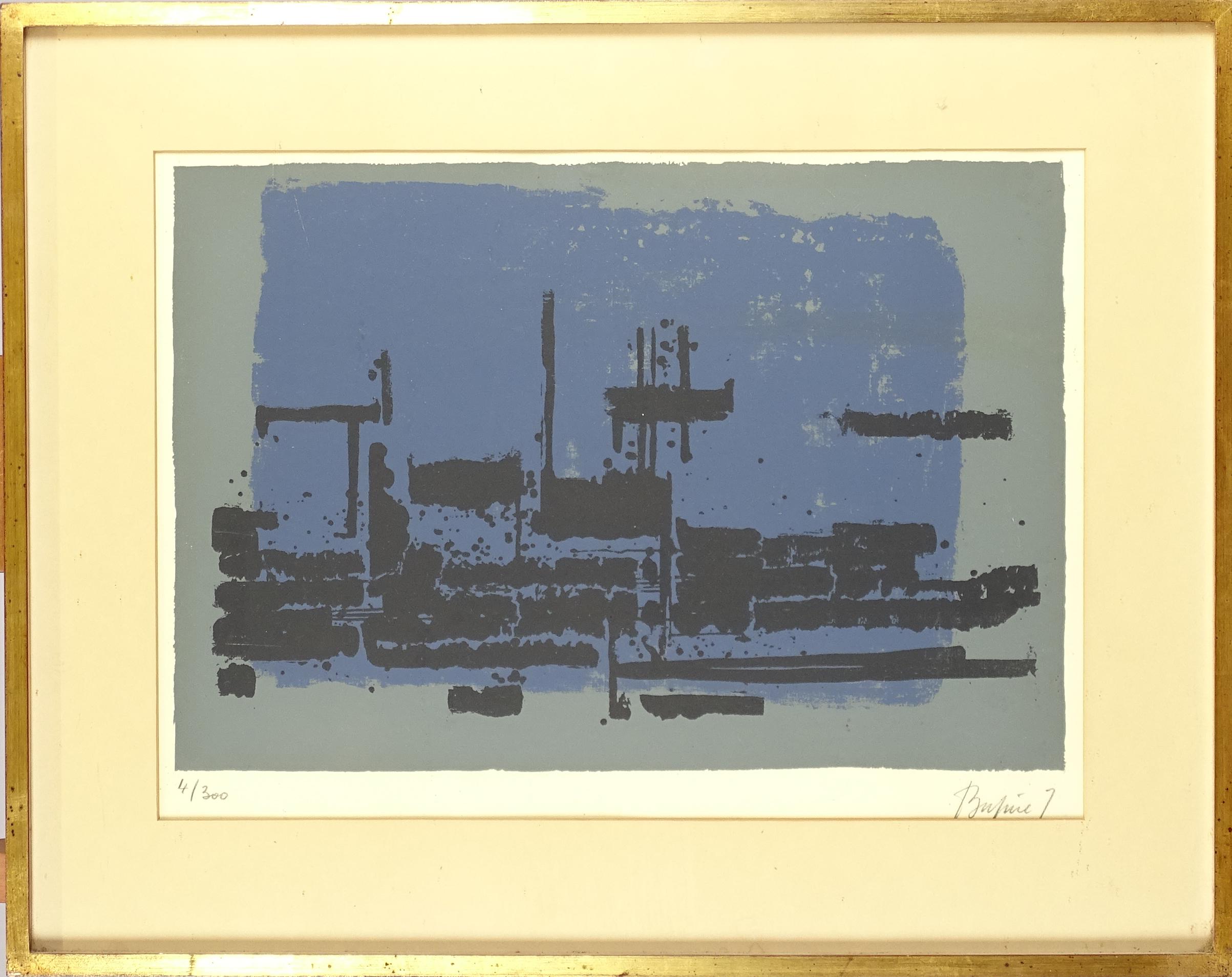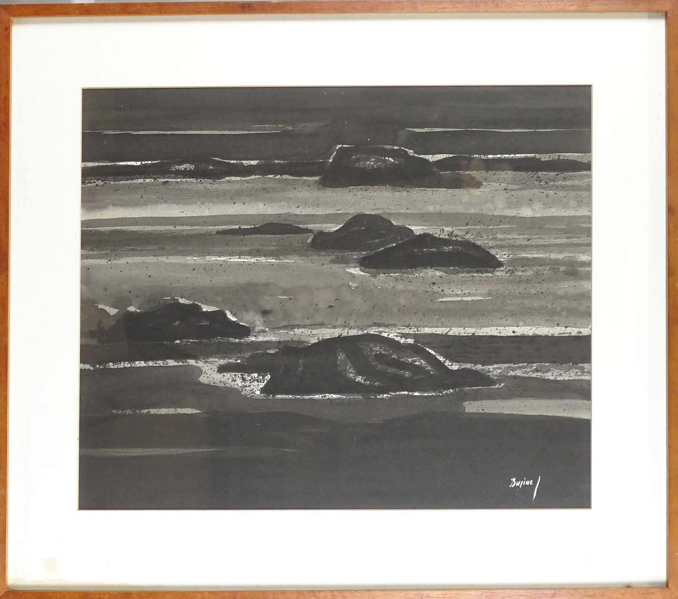 Tableau et estampe signés *BUSINE Z.* (Zéphir) (1916-1976): Encre lavis -Paysage- 50x60cm et Sérigraphie -Composition- 4/300 32,5x48cm cadres baguettes s/v.