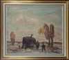 Tableau HST -Gitans avec roulotte- signé *LAMBRE S.* (Sylvain) (1889-1958) 60x70cm cadre bois doré
