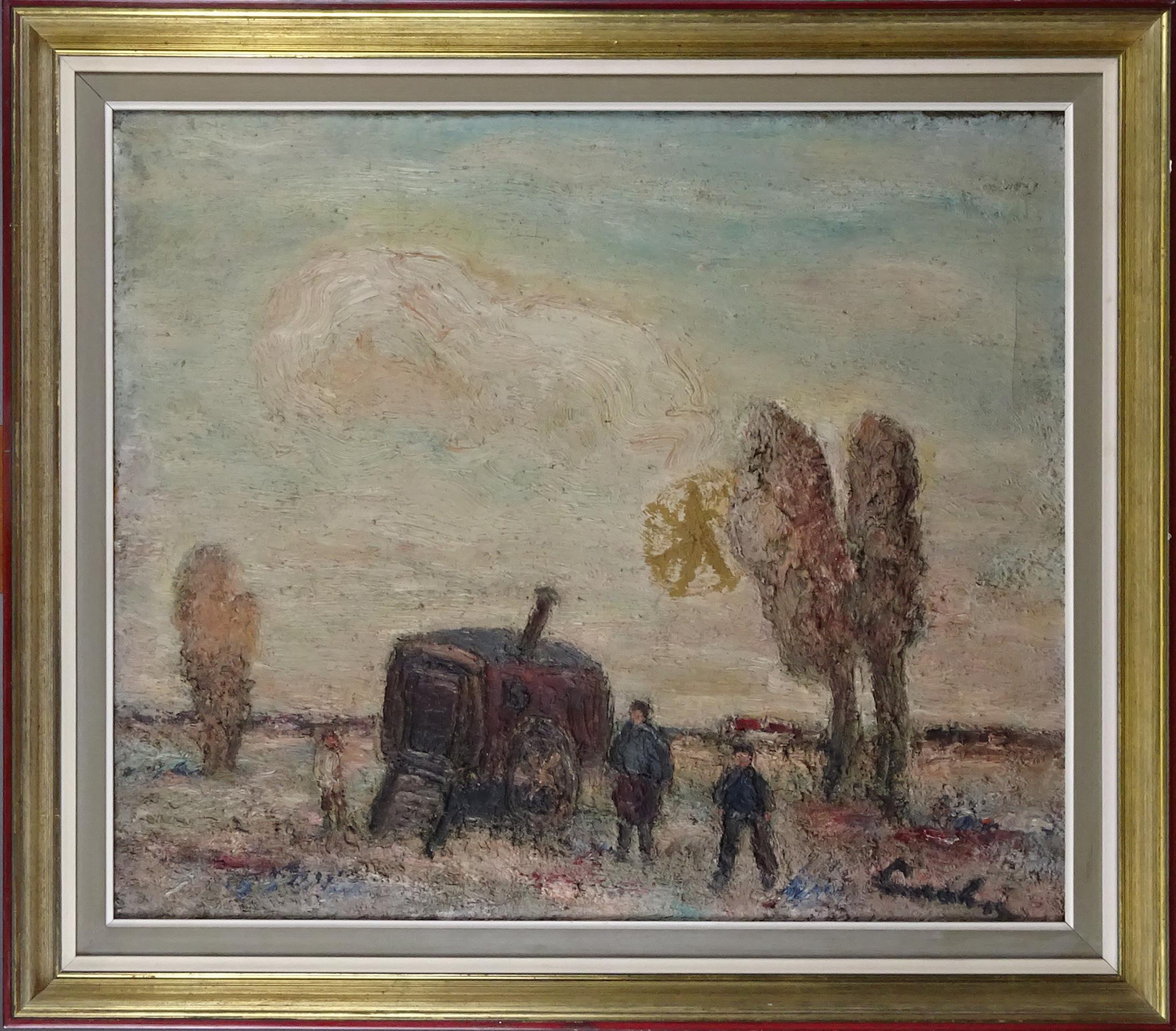 Tableau HST -Gitans avec roulotte- signé LAMBRE Sylvain