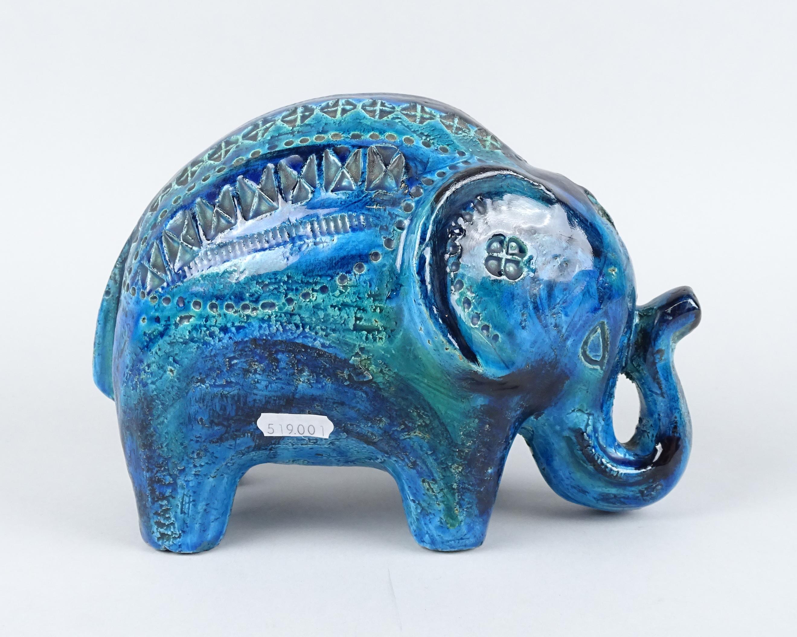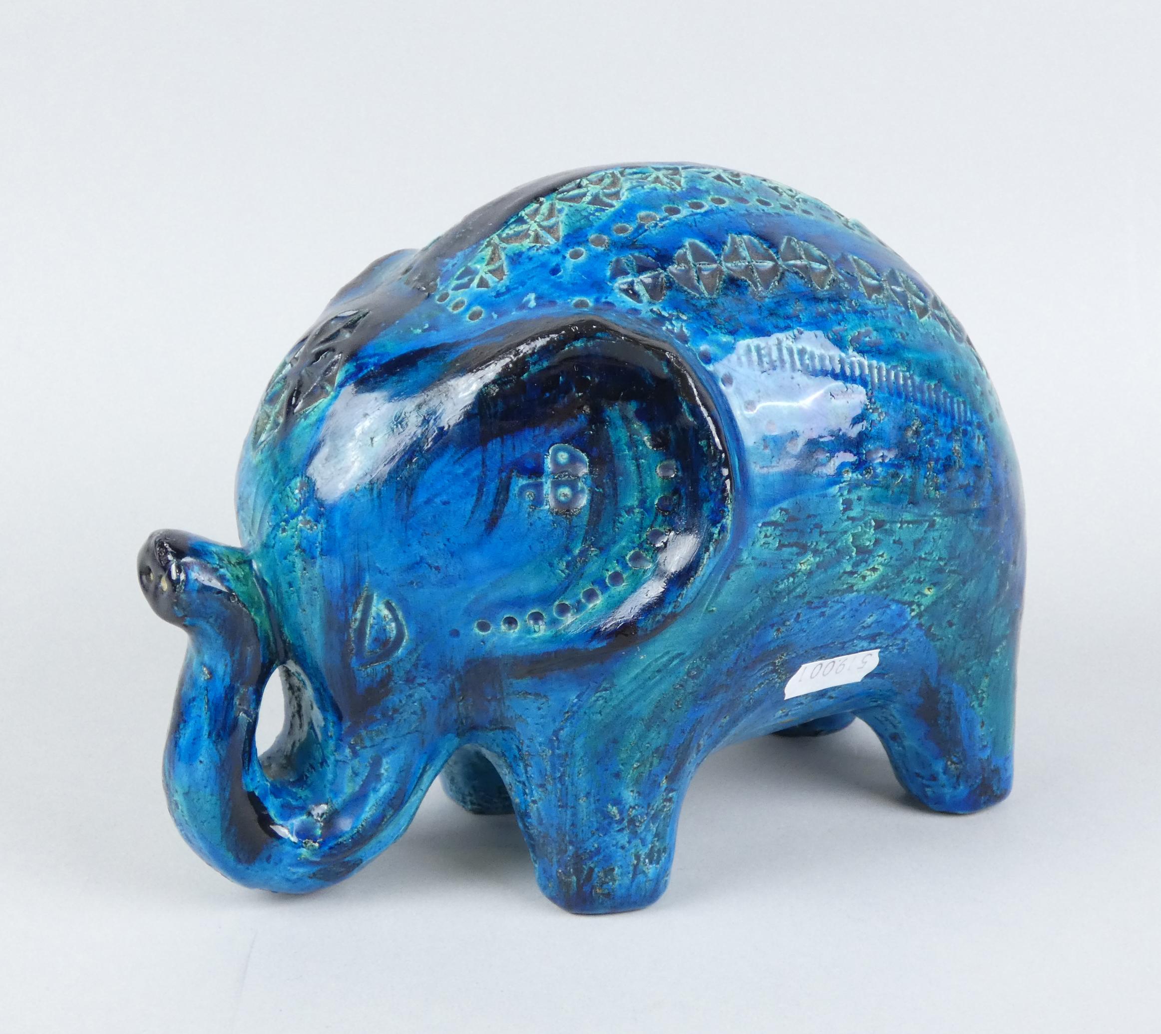 Sculpture: Céramique camaïeu bleu -éléphant- signé *LONDI A.* (Aldo) (1911, 2003) série -Remini-15x23x15